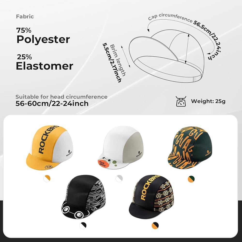 🌞 MULTIFUNZIONALE: Il cappellino non è solo adatto per il ciclismo ma anche per le altre attività sportive come escursione, corsa, pesca, tennis ecc. 🌞 PROTEZIONE SOLARE: Il cappellino da ciclismo è certificato a livello internazionale UPF 50+. Mantenerti asciutto e comodo durante l'esercizio. Istruzioni di lavaggio : Il berretto può essere lavato a mano e asciugato all'aria. Paese di origine : Cina Acquista ROCKBROS Cappellino Bici Beretto da Ciclista, Sottocasco Estivo da Ciclismo, Traspirante Antipolvere Parasole Assorbi-Sudore, per Uomo Donna Unisex spedizione gratuita resi gratuiti su prodotti idonei Tipo di chiusura : Pull on 29g Stagione: Primavera, estate, autunno Adatto per le attività sportive come escursione, corsa, pesca, tennis ecc Il nostro servizio clienti può sempre fornire una soluzione! La tesa del cappellino impedisce ai raggi UV di danneggiare gli occhi e il cuoio capelluto. Composizione materiale : Poliestere + nylon + elastan PROTEZIONE SOLARE UPF 50+ Rockbros Italia ROCKBROS Cappellino Bici Beretto Estivo, Cappellino Con Visiera Rockbros Shop Online 🌞 TRASPIRANTE & COMODO: Questo cappellino ha applicato un design della rete che garantisce una migliore traspirabilità. Grazie alla fascia elastica, il cappellino si adatta alla maggior parte della testa. La circonferenza della testa è di circa 56 cm.