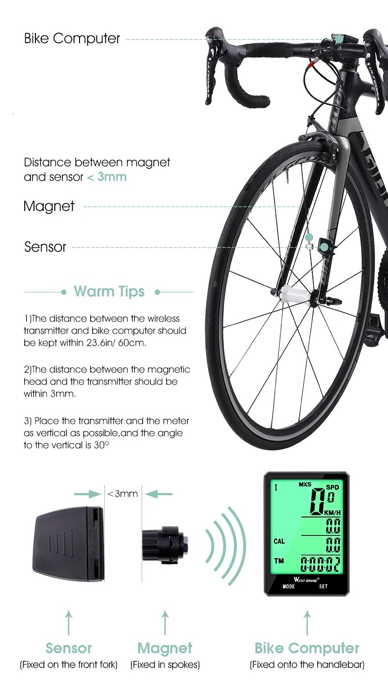 Compra VOANZO Tachimetro per Computer da Bicicletta Display LCD retroilluminato Impermeabile con cronometro per monitoraggio in Tempo Reale per Ciclismo velocità e Distanza in Tempo Reale . SPEDIZIONE GRATUITA su ordini idonei Attenzione all'installazione, la migliore distanza di rilevamento tra il sensore e il magnete di rilevamento è di circa 3 mm. Magneti e sensori sono dispositivi importanti per il codificatore per misurare la corsa. Entrambi sono indispensabili. Il guscio è realizzato in tecnopolimeri, struttura opaca e movimento del dispositivo elettronico, è una buona opera d'arte e il design impermeabile viene utilizzato per migliorare l'esperienza di guida. La lunghezza della linea di collegamento è di 87 cm e la dimensione della tabella dei codici è 4,6 * 1,9 * 4 cm. Contachilometri Bici Tachimetro Per Bicicletta Computer Per Bici Cronometro Impermeabile Multifunzione Per Bicicletta Contachilometri MTB Cronometro Accessori Per Ciclismo - AliExpress Contachilometri Bici Senza Fili Il magnete è installato sui raggi e la distanza dal sensore è controllata a circa 3 mm.