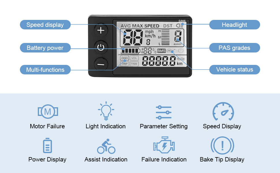 24V 36V 48V Electric Bike S866 LCD Display With USB For MTB E-bike E-scooter | EBay