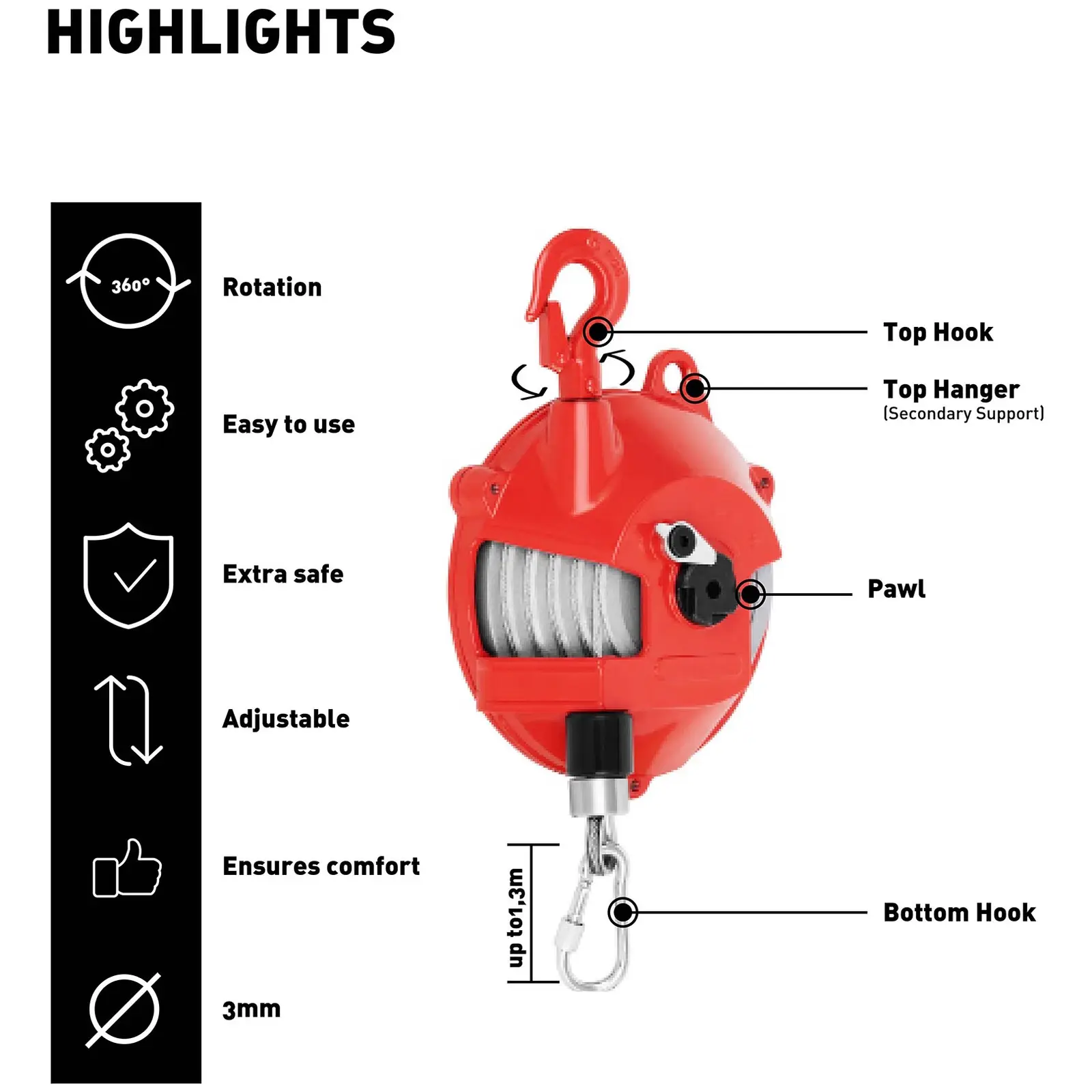 Ideale per il personale impegnato in varie mansioni. È esente da rischi elettrici o pneumatici, garantendo un utilizzo sicuro e affidabile. Bilanciatore A Molla Retrattile, Spring Balancer Con Gancio E Cavo Da 1.5 M, Bilanciere A Molla Sospeso Per Fabbrica E Catena Montaggio, Riduci Efficacemente L'intensità Del Lavoro(Size:3-5kg Il equilibratrici a molla industriali utilizza un cavo di accia Bilanciatore A Molla Regolabile Bilanciatore A Molla 0.5-1.5KG Cuscinetto Portacavo A Molla Retrattile Portautensile A Sospensione Con Accessorio Per Accessori Giallo : Amazon.it: Commercio, Industria E Scienza Bilanciatore Sealey 3 Kg 🌟【Multifunzione】 Utilizza facilmente strumenti pneumatici, elettrici e idraulici. In caso di sovrappeso o rottura della molla, il bloccaggio immediato impedisce la caduta degli oggetti. 🌟【Per la Catena di Montaggio】 Perfetto per lavori singoli e continui sulla catena di montaggio. 🌟【Dispositivo di Sicurezza】 Il nostro spring balancer è dotato di un dispositivo di sicurezza per bloccare manualmente gli oggetti sospesi. Risparmia spazio in fabbrica e riduci i costi di produzione.