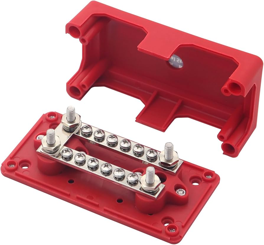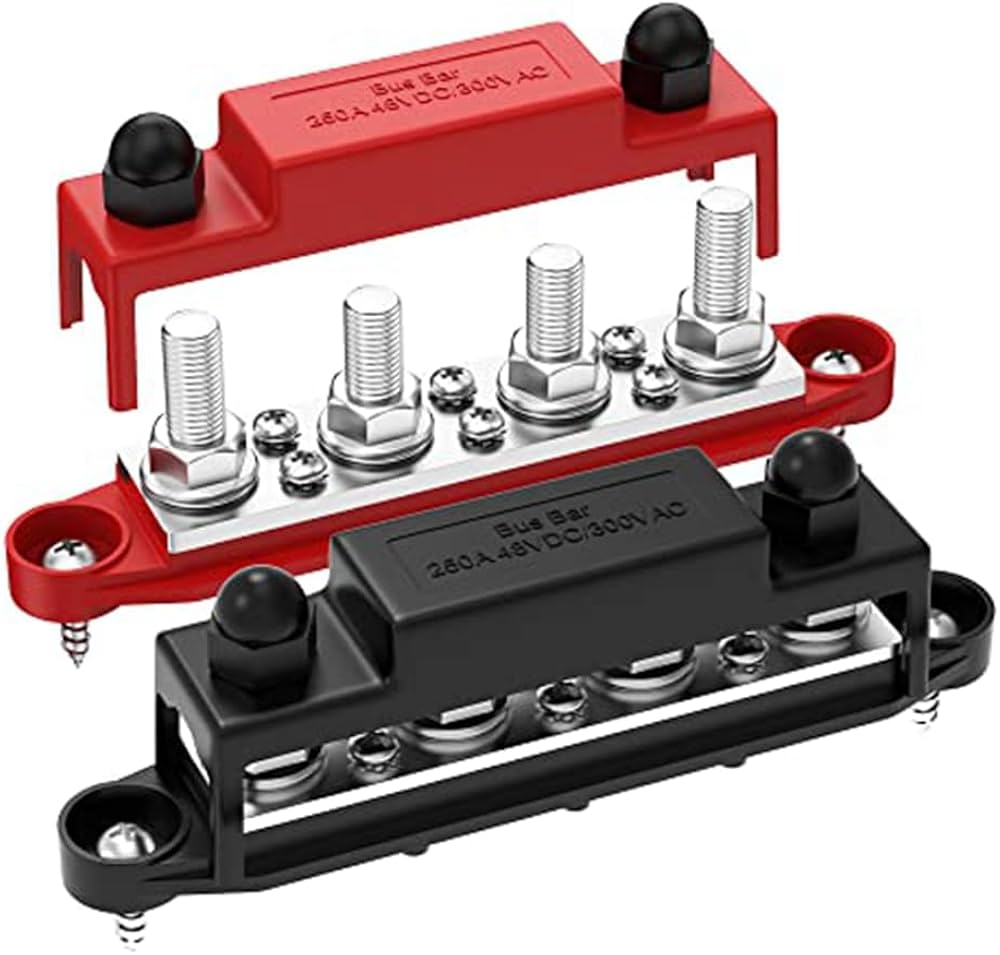 Acboor Sbarra Collettore 12 V-48 V, 2 Binari Da 150 A, Blocco Di Distribuzione Dell'alimentazione Busbar DC, Con 4 Bulloni Di Collegamento M6, Per