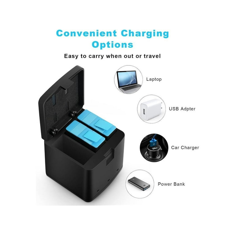 2 Pack Batteries For Gopro Hero 8 7 6 5 Black Battery Charger And 3-Channel LED USB Storage Charger, Fully Compatible With Hero 8 7 Black Go Pro 5 6 7