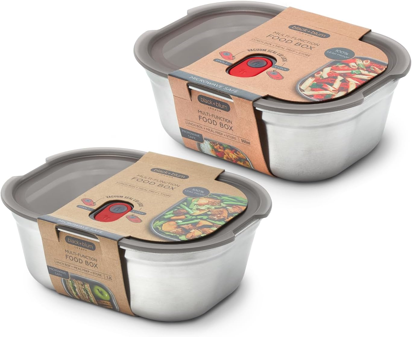 The Black + Blum Original Lunch Box in Ocean is 100% leak proof and comes with a stainless steel fork, separate food compartment and a handy sauce pot Robusto, resistente agli urti e progettato per essere utilizzato tutti i giorni. ECO FRIENDLY: Realizzato in polipropilene e co-poliestere (senza BPA). Black + Blum Black & Blum - Lunch Box Original Ocean Umami Lunch Box A PROVA DI PERDITE: quattro fermagli sul coperchio e un'ampia guarnizione in silicone per garantire che il cibo non fuoriesca DESIGN RIVOLUZIONARIO: più versatile di un contenitore per alimenti standard, ha comodi vani portalimenti e salse a tenuta stagna e una forchetta in acciaio inossidabile.
