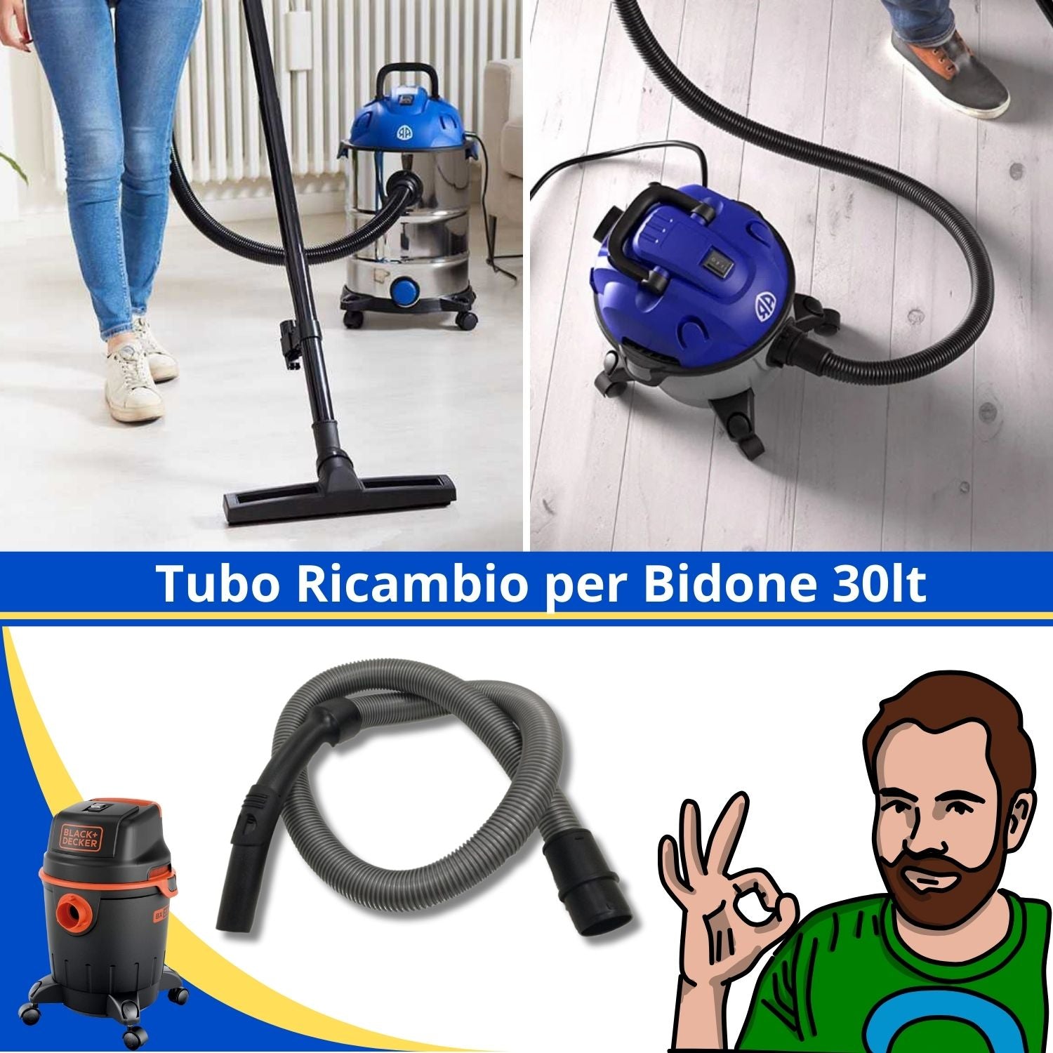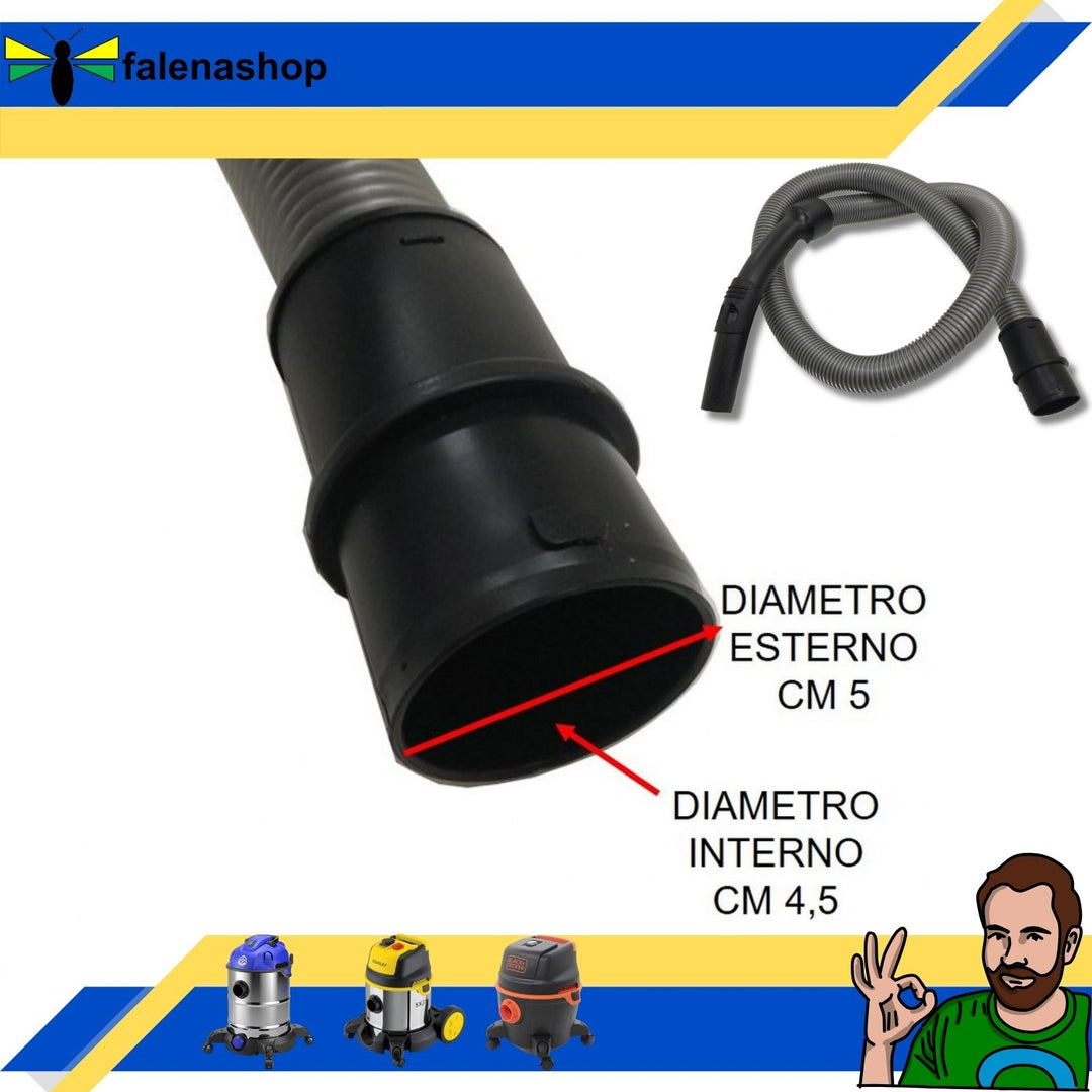 Ricambi Black & Decker aspirapolvere Trova facilmente il ricambio, il prodotto di manutenzione o l'accessorio adatto al tuo aspirapolvere Black & Decker Aspirapolvere Black And Decker Bidone Aspiratutto 1600w Aspirapolvere Liquidi Solidi Professionale Black Decker RICAMBIO ASPIRAPOLVERE : Tubo flessibile per aspirapolvere a marchio Black Decker e compatibili - Per Bidone Aspirapolvere / Aspira Liquidi da 20Litri TUBO FLESSIBILE: Tuto ricambio per bidone aspiratore aspirautto con filtro hepa o sacchetto - Lunghezza tubo 1,5 metri diametro 3,5 cm con attacco per bidone da 30 litri - diametro attacco aspirapolvere 5 centimetri con sporgenza per incastro nella parte superiore del tubo- all'altra estremità tubo rigido curvo con presa d'aria sezione attacco 3,3 centimetri COMPATIBILE CON: Modelli di Bidone aspiratore aspirapolveri aspiraliquidi Black&decker da 30 litri come BXVC15PE BXVC20PE BXVC20PTE BXVC0XE, BXVC20XTE ed eventuali altri modelli compatibili con gli attacchi del tubo Accessori e ricambi originali Black&decker codice azienda 4340130