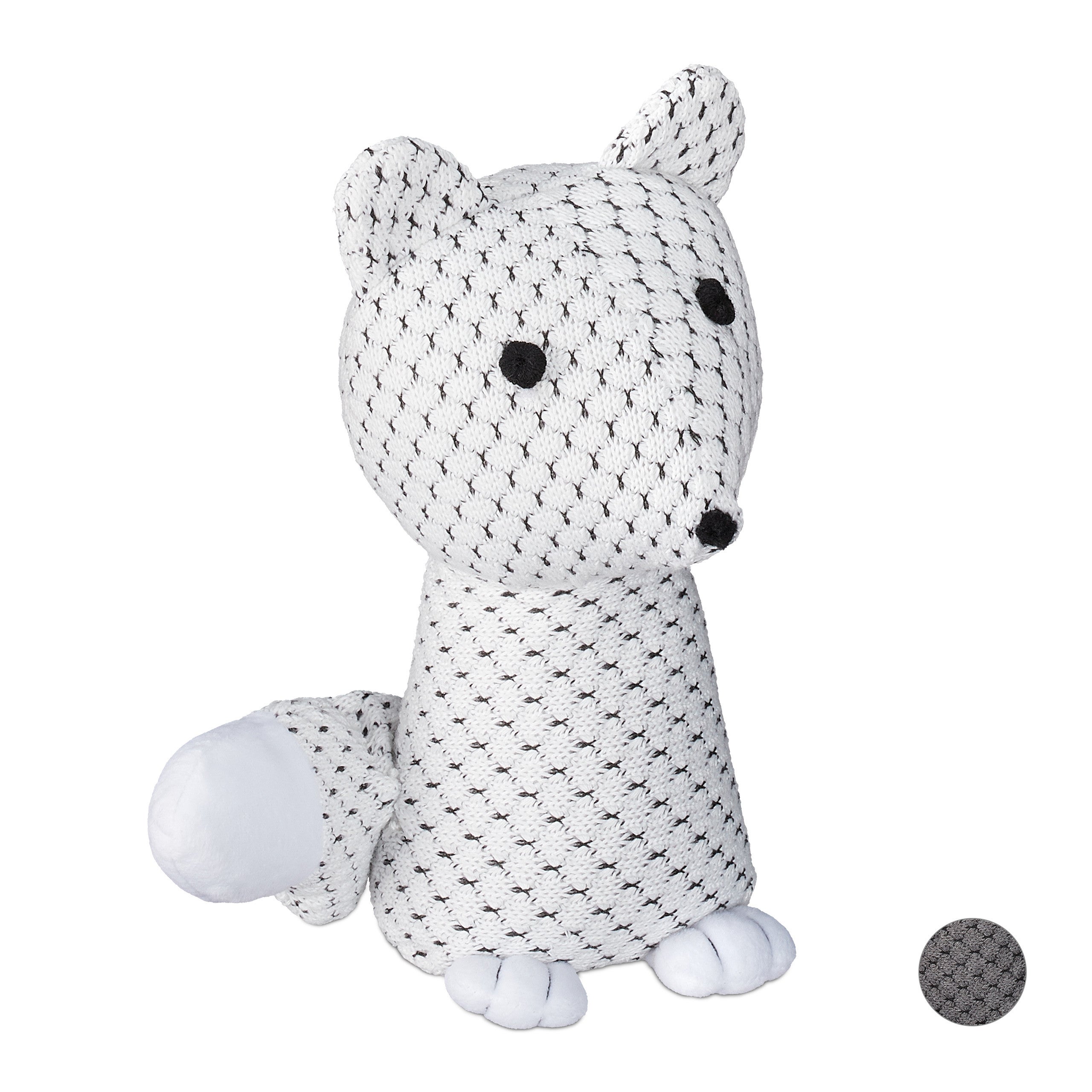 Relaxdays Gatto Fermaporta, In Stoffa Morbida, Blocca Porta Da Terra, Interno In Sabbia, 22x20x15,5 Cm, Bianco Marrone