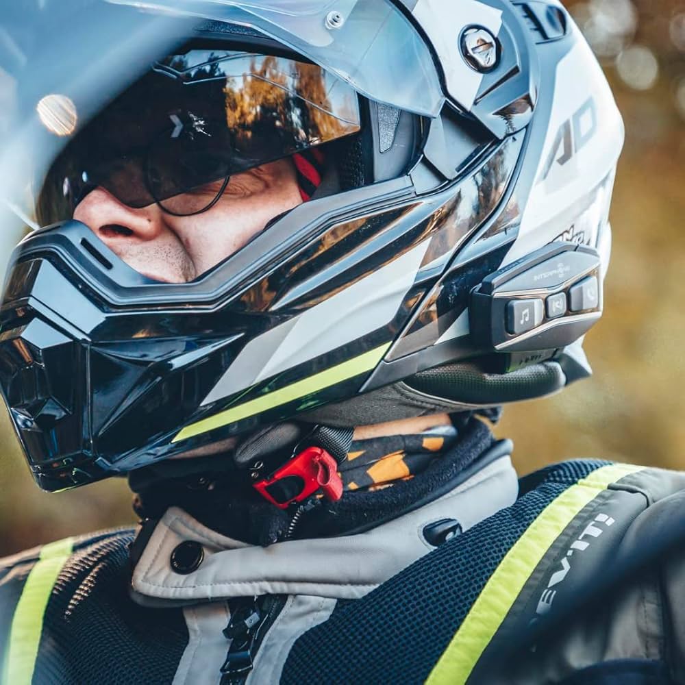 Con tutti i sistemi TFT e GPS Non compatibile con altri interfoni solo Bluetooth Comunicazione in gruppo a 24 Interfoni fino a 1.6Km CONTENUTO PACK: Clip adesiva per montaggio sul casco - Staffa di montaggio a clip - Speaker da 40mm HD - Microfono boom (caschi jet e modulari) e adesivo (caschi integrali) - Cavo usb type C per dati e ricarica. Con i Navigatori gps con tecnologia Bluetooth e profilo HFP Visualizzazione percentuale carica batteria Estesa con i sistemi OEM Mesh 2.0 integrati nei caschi Sena TUTTA LA POTENZA DEL MESH A PORTATA DI DITA Caratteristiche generali Intercom Tecnologia Mesh 2.0 (no intercom bluetooth) Con tutti gli smartphone dotati di tecnologia Bluetooth Descrizione Prodotto U-COM 8R è l'interfono dotato di tecnologia MESH 2.0 più intuitivo sul mercato. Grazie a questa avanzata tecnologia godrai di una connessione più affidabile e collegamento in gruppo con altri interfoni, fino a 24, con un semplice click fino a 1,6Km. Il Bluetooth 5.2 (solo per smartphone / GPS / TFT ) e la totale compatibilità con tutti i sistemi SENA, TFT, GPS e dei maggiori produttori di caschi presenti sul mercato lo rendono il compagno di avventure perfetto. Vox intercom regolabile su 5 livelli Regolazione automatica del volume Inoltre grazie alla totale rimovibilità, potrai installarlo in poche mosse su tutti i tuoi caschi preferiti. U-COM 8R offre anche delle elevatissime performance audio grazie a nuovi altoparlanti HD da 40mm per bassi profondi e avvolgenti mentre ascolti le tue playlist preferite, anche in sottofondo durante una conversazione. Grazie a questa avanzata tecnologia godrai di una connessione più affidabile e collegamento in gruppo con altri interfoni, fino a 24, con un semplice click fino a 1,6Km. Il Bluetooth 5.2 (solo per smartphone / GPS / TFT ) e la totale compatibilità con tutti i sistemi Sena, tft, gps e oem dei maggiori produttori di caschi presenti sul mercato lo rendono il compagno di avventure perfetto. Visualizzazione tempo di autonomia residuo App App iOS e Android Possibilità di caricare l’interfono durante l’utilizzo Gestione con assistente vocale di Apple e Android via pulsante telefono (una singola pressione) Cavo usb type C per dati e ricarica Guida rapida Speed dial: possibilità di memorizzare 3 numeri di telefono Installabile sulla maggior parte dei caschi Audio Messaggi vocali pre-registrati Microfono direzionale antivento Contenuto pack Staffa di montaggio a clip e adesiva Fino a 24 Piloti, Distanza 1,6 Km, Autonomia 18 ore, Compatibile TFT e GPS, Impermeabile, Speaker HD 40mm. Dimensioni U-com8R offre anche delle elevatissime performance audio grazie a nuovi altoparlanti HD da 40mm per bassi profondi e avvolgenti mentre ascolti le tue playlist preferite, anche in sottofondo durante una conversazione. Ricomposizione dell’ultima chiamata Risposta vocale Accessori Moto INTERPHONE U-Com 7R - Doppio - Interfono Moto Bluetooth 5.2 Rimovibile E Batteria Integrata 15 Ore Autonomia, 4 Moto 1 Km, Compatibile TFT E GPS, Impermeabile, Speaker 32mm, Per Tutti I Caschi Interfono Moto Coppia Controllo totale delle funzioni dell’interfono Durata batteria in modalità Mesh 18h (durata variabile con musica/gps/radio in sottofondo) Selezione dei preset dell’equalizzatore audio