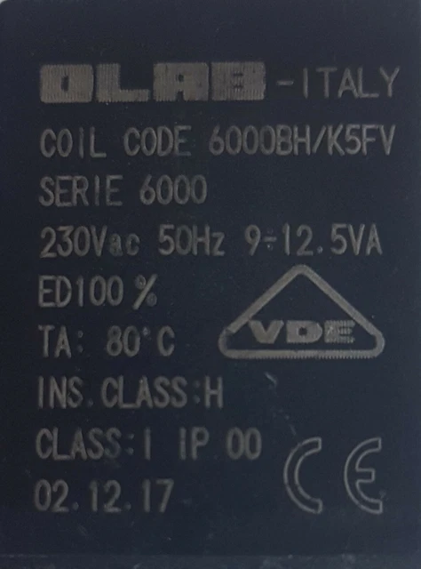 OLAB 6000-9000 Bobina Solenoide 230V Per Elettrovalvola Ottone 3/8 1/2