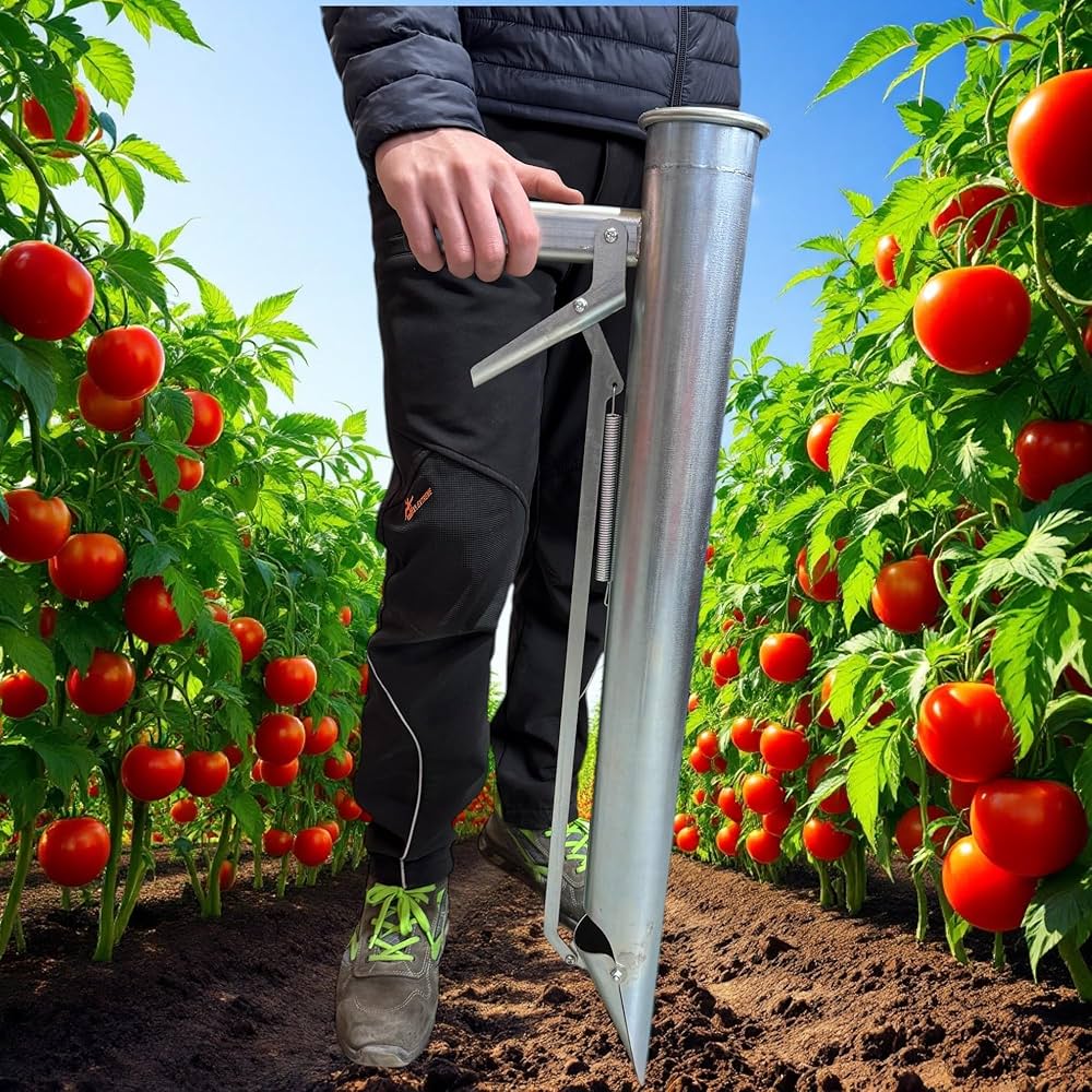 Semplice da usare, basta inserire il piantatore nel terreno, inserire la piantina o altro nel tubo, premere la leva di apertura delle bocche e togliere il piantatore tenendo premuta la leva. Riduce di molto i tempi di piantagione. Diametro foro: 7 cm Lunghezza tubo: 92 cm bocche bulbi piantine veloce piante piantare orto attrezzi Piantatore Automatico Per Piantine Piantatore 3 Bocche - Piantatore Veloce 3 Bocche Piantatore Rapido 3 Bocche