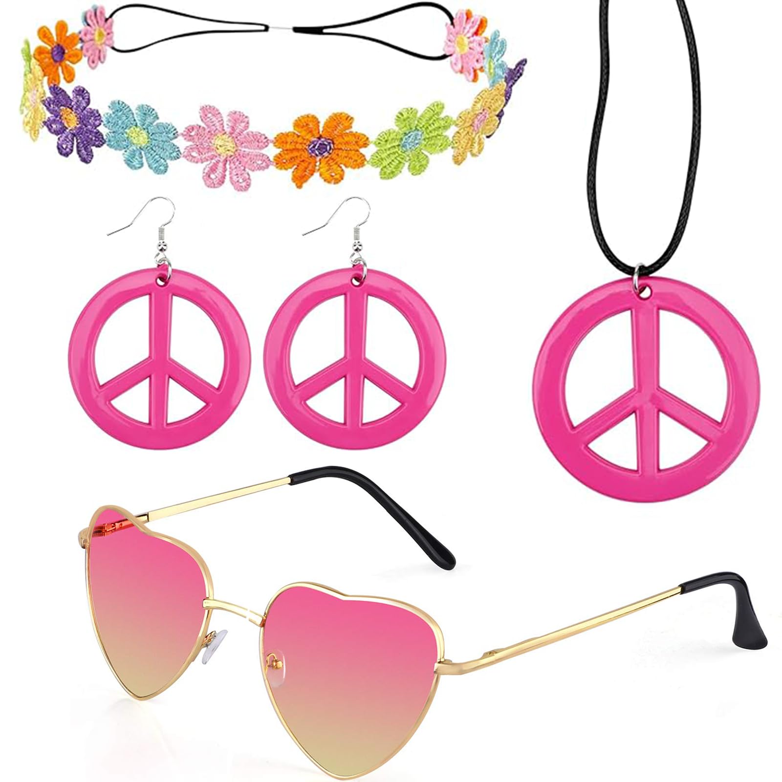 MIVAIUN 5 Pezzi Hippie Costume Set, Bohemia Costume Set, 60s Accessori Per Feste, Occhiali Da Sole, Collana Con Segno Di Pace Orecchini, Stile Bohemien Fascia, Anni '60 Hippie Set Accessori
