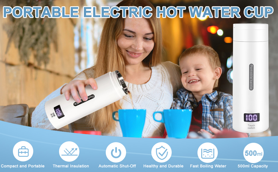 Attenzione: Le variazioni di altitudine possono influenzare il punto di ebollizione dell'acqua. 4 preimpostazioni di temperatura intelligenti - Le temperature preimpostate del bollitore portatile sono di 45/55/80/100 °C. Compara i prezzi delle migliori offerte online e scegli il bollitore perfetto per le tue esigenze. Acquista al miglior prezzo e ricevi il Bollitore elettrico piccolo comodamente a casa tua. Non farti sfuggire sconti e promozioni proposti dai siti online Temperatura Regolabile Portatile, Bollitore Da Viaggio Ricaricabile In Acciaio Inossidabile Con 4 Impostazioni Di Temperatura, Ricarica USB, Capacità Della Batteria 6000 MAh, 400 Bollitore Elettrico Dimensioni più compatte, facile da usare - Abbiamo volutamente ridotto ulteriormente le dimensioni del bollitore, con una potenza di 300 W ma una capacità maggiore di 500 ml. Dispone inoltre di altre funzioni come la protezione da cortocircuito, il riscaldamento automatico, l'accumulo automatico di calore, lo spegnimento automatico, ecc. Tutte e quattro le temperature possono essere impostate in anticipo e il tempo di mantenimento automatico del calore è di 12 ore. Altezza del prodotto ridotta a 22 cm. Bollitore da viaggio in acciaio inox - Siete ancora preoccupati che l'hotel non fornisca acqua bollente durante un viaggio d'affari/viaggio? Con questo bollitore portatile da 500 ml avrete sempre l'acqua bollente a portata di mano!