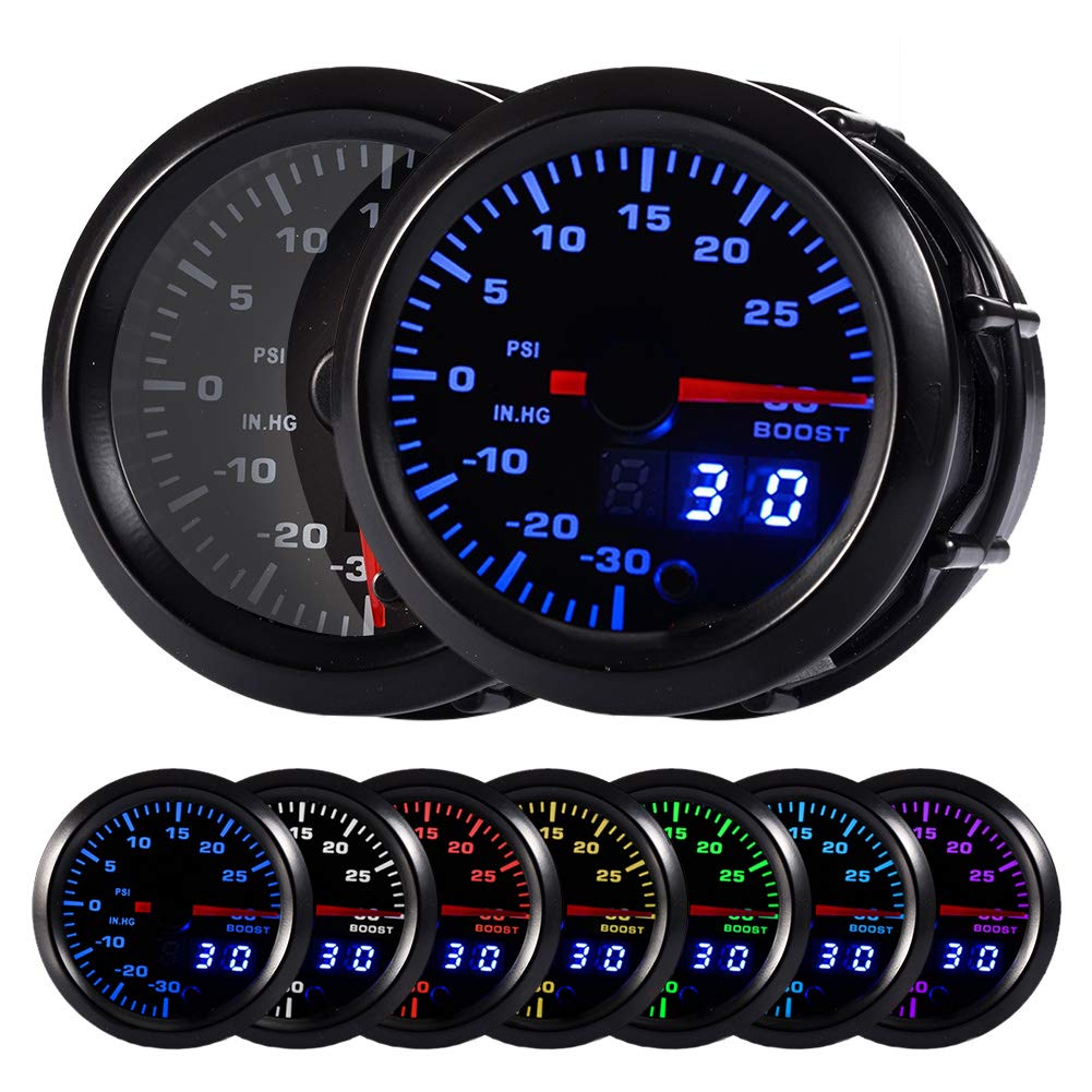 Supmico 52mm Motore Auto Kit Calibro Di Indicatore Turbo Boost Kit Manometro PSI Puntatore Digitale Doppio Indicatore Luminoso LED 7 Colori