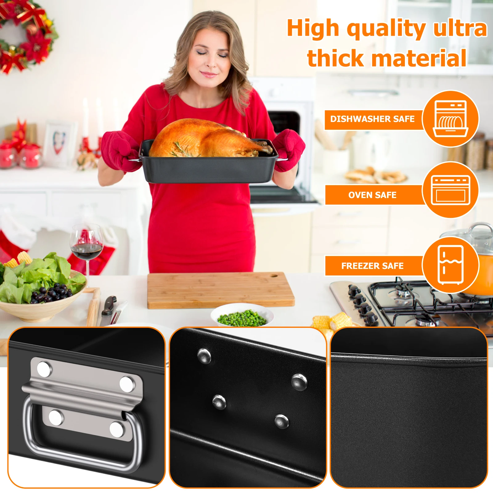 Sicuro e conveniente: la teglia da forno è progettata pensando alla tua sicurezza. Facile da mantenere: per mantenere la qualità e le prestazioni della teglia, si consiglia di pulire la superficie con salviette di carta oleate e pulire la parte interna con una pinza. Migliore Teglia Rettangolare Antiaderente Pintinox Teglia Rettangolare Bordo Alto (4cm) Con Rivestimento Antiaderente Teglia Rettangolare Teglia Forno Rettangolare Robusta e pratica: realizzata in acciaio ad alto tenore di carbonio, la teglia antiaderente è robusta e pratica per un uso a lungo termine nel forno da forno. La sua generosa capacità lo rende adatto a vari ambienti come case, ristoranti, scuole, uffici e negozi. Prima di ogni utilizzo, applicare un po 'di grasso o spray da cucina per risultati di cottura ottimali. Il corpo è in acciaio al carbonio con rivestimento esterno resistente alle alte temperature, e un rivestimento interno antiaderente a 4 strati effetto pietra La sua struttura robusta garantisce una distribuzione uniforme del calore e risultati di cottura costanti. Consente un facile rilascio dei prodotti da forno e una pulizia senza problemi, rendendolo una scelta affidabile per le vostre esigenze di cottura. Evitare di riscaldarlo o usarlo sotto la griglia.