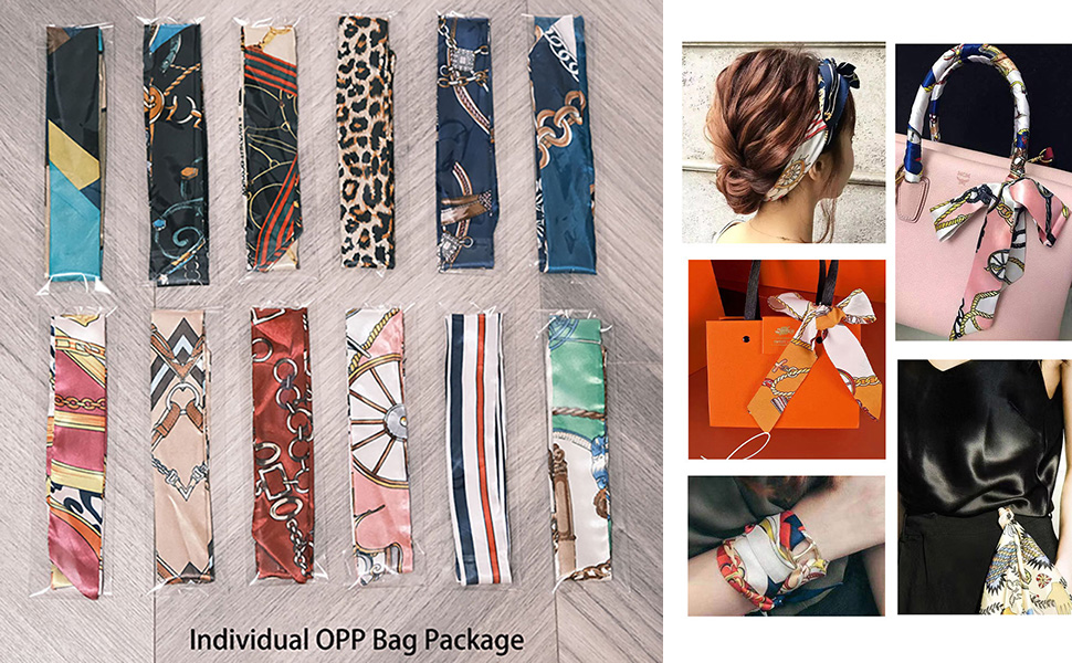 14 Pezzi Sciarpa Da Borsa In Raso Di Seta Alla Moda, Sciarpa Con