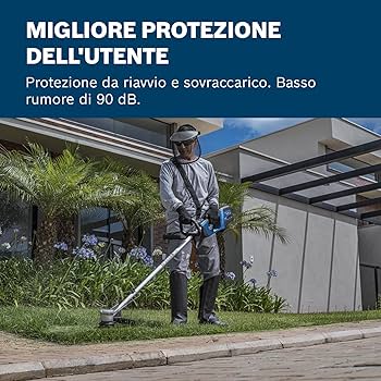 Diametro del filo: 2,4 mm Componenti in dotazione: GFR 18V-23, 1 gruppo bobina, 1 tracolla, set di lame per decespugliatore, guida di protezione per le piante, perno di bloccaggio Decespugliatore Bosch A Batteria Bosch Professional 18V System Decespugliatore Batteria GFR 18V-23 Motosega A Batteria Bosch Professional 18V System desbrozadora a batería GFR 18V-23 ( Brushless , diámetro de corte de 23 cm, incl. 1 bobina, 1 correa, juego de cuchillas, protector de plantas) Recomendaciones Bosch Professional Bosch Cortabordes con batería EasyGrassCut 18 Maggiore durata del motore, maggiore autonomia, potenza superiore. Controllo elettronico del numero di giri: mantiene costante la velocità di rotazione, per prestazioni di taglio uniformi. Le batterie e il caricabatteria sono completamente compatibili con il Bosch Professional 18V System e con molti altri utensili del sistema di batterie condiviso multi-marchio AMPShare DATI TECNICI Sistema di taglio delle cesoie: Lama a tre denti, Pro-Tap Funzione anti-groviglio: assicura un taglio più regolare, prevenendo gli inceppamenti causati dall’erba alta o dalle infestanti che si avvolgono attorno all’alberino. La struttura leggera e ben bilanciata consente un decespugliamento senza sforzi Il nuovo GFR 18V-23 È un potente decespugliatore a batteria per giardini di dimensioni medio-grandi, taglia agevolmente anche la vegetazione più folta e le fitte zone di sottobosco. Diametro del filo di taglio: 33 cm La funzione anti-groviglio Bosch assicura un taglio più regolare, prevenendo gli inceppamenti causati dall’erba alta o dalle erbacce che si avvolgono attorno all’alberino. Carcassa durevole in alluminio