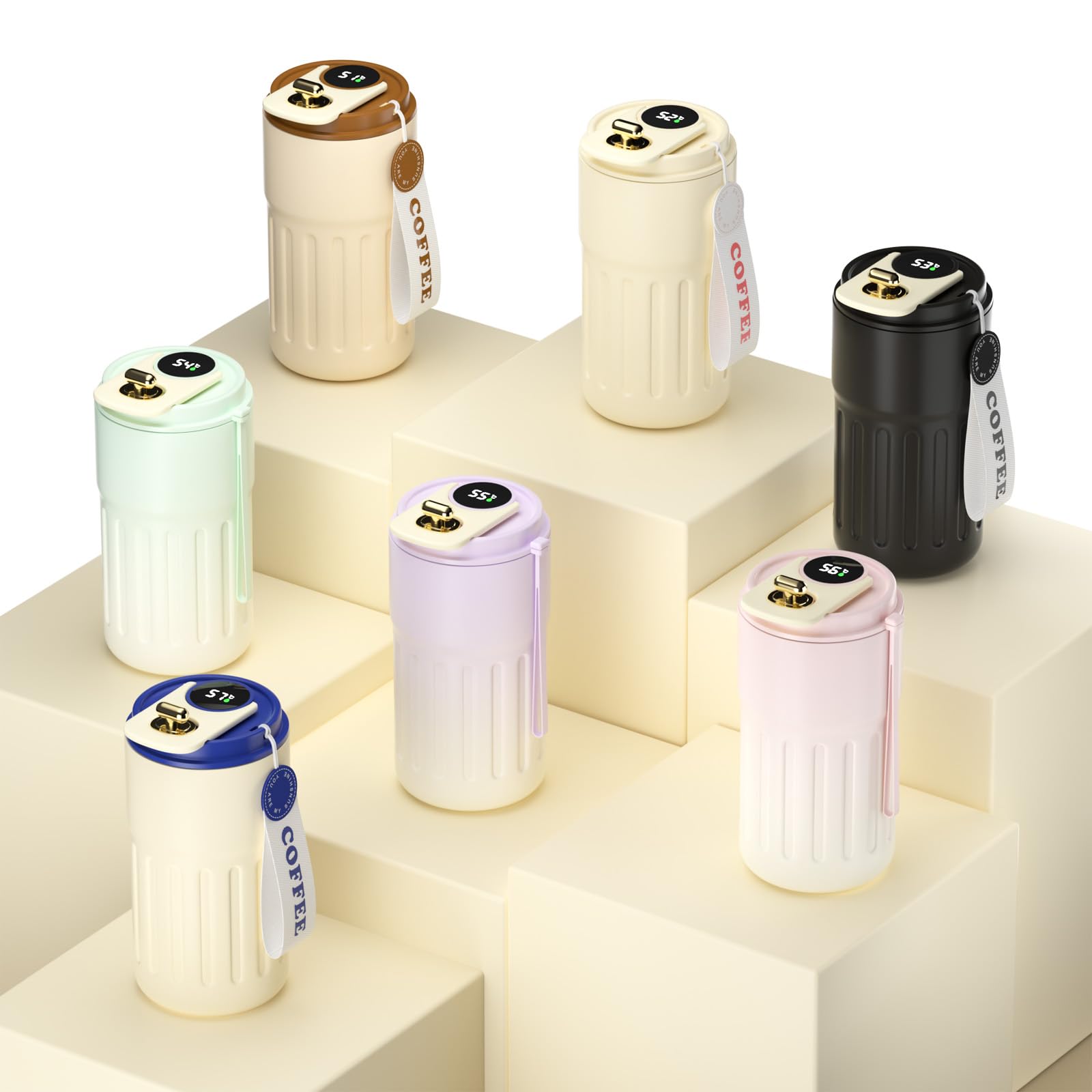 💛💛【Facile da trasportare】Questa tazza da caffè con display della temperatura è leggera e facile da trasportare, può contenere la giusta quantità della tua bevanda preferita e può adattarsi perfettamente a un portabicchieri, zaino o borsa. Il suo isolamento sottovuoto a doppio strato garantisce un isolamento duraturo di bevande calde e fredde, assicurando la lunga durata della tazza da caffè. Tazza Termica Con Pulsanti Tazza Da Caffè Con Display Della Temperatura, Tazze Da Caffè Intelligenti Con Schermo, Bottiglie Da Caffè In Acciaio Inox Da 410 Ml A Prova Di Perdite, Tazza Da Viaggio, Mantiene Le Bevande Tazze Termiche In Offerta 🩷🩷【Display LED impermeabile】Toccando lo schermo LED, il chip di temperatura intelligente sul coperchio visualizza la temperatura in tempo reale della bevanda, rendendo facile comprendere la temperatura interna del coperchio della tazza da viaggio. Ha un eccellente effetto di conservazione del calore. 🧡🧡【Ampiamente utilizzato e ottimo regalo】Questa tazza da viaggio per il caffè ha una capacità di 420 ml, una bella forma, piccola e portatile, dandoti una buona sensazione di utilizzo. AMFUN Tazza da Caffè con Display Digitale, 410 ml Tazza Termica , Tazza termica da viaggio, 316 in Acciaio Inox Tazza Termica Intelligente Portatile in Acciaio Inox, Isolata, a Prova di Perdite Toccando il display viene visualizzata la temperatura per 3 secondi e quindi si entra automaticamente in modalità di risparmio energetico. ❤️❤️【Design a prova di perdite】Questo caffè con display è molto a prova di perdite e può essere posizionato in una borsa o in un portabicchieri per auto senza preoccuparsi di perdite o fuoriuscite di liquidi. Puoi gustare un caffè caldo ovunque tu vada.