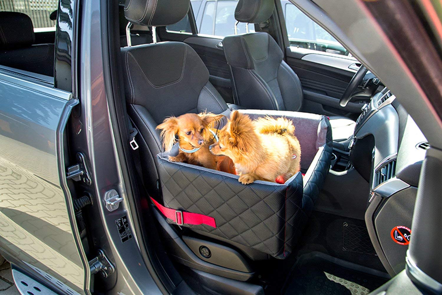 BoutiqueZOO Esclusivo Seggiolino Per Cani E Gatti | Auto, Sedile Posteriore, Passeggero | Lettino, Borsa | Similpelle | Colore: Nero | Grande: M (47x40 Cm