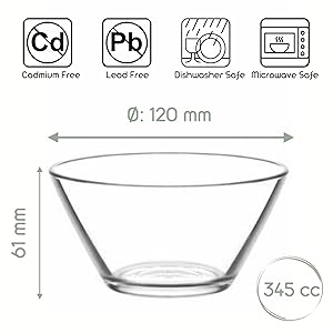 LAV Premium Glass Dessert Bowls Set Of 6, 345 Ml, 100% Lead Free Dishwasher Safe Stackable