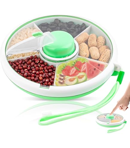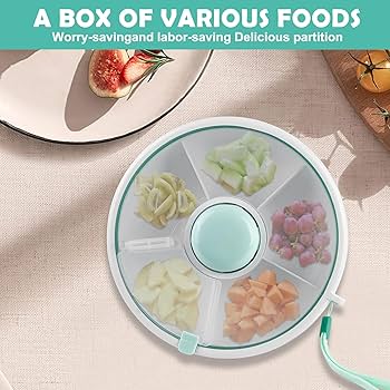 Snack Box Spinner: questa scatola per bambini ha 5 scomparti e un pulsante per passare a qualsiasi scomparto desiderato per gli snack È possibile estrarlo facilmente quando lo si desidera. Il coperchio trasparente e sicuro è ben protetto da polvere e sporco. Piatto Con Coperchio PRITOK Snack Spinner: Snack Box Con Coperchio, Contenitore Per Piatti Per Dolci Materiale di alta qualità: il nostro organizzatore di scatole per la merenda è realizzato in materiale PP + ABS di alta qualità, robusto, durevole, liscio, complessivamente leggero e riutilizzabile. Snack Box Spinner: questa scatola per bambini ha 5 scomparti e un pulsante per passare a qualsiasi scomparto desiderato per gli snack!