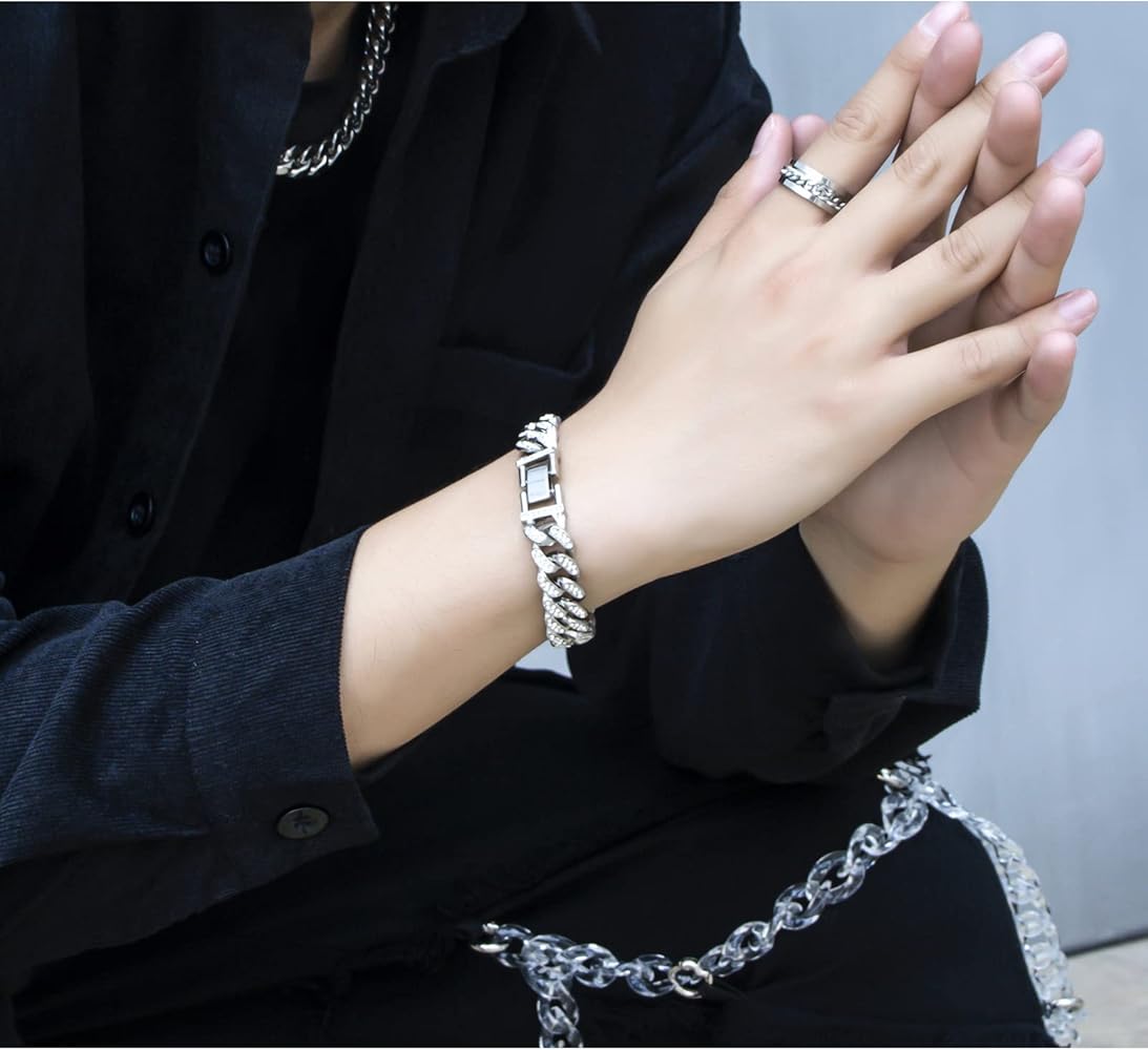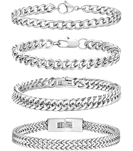 Bracciale Cubano In Acciaio Inox, 2 Pcs Per Uomo Con Chiusura