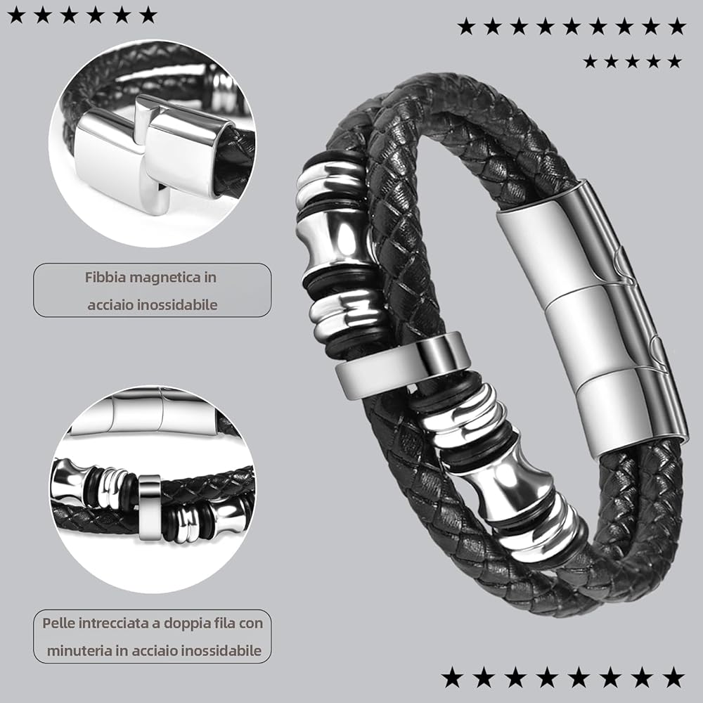 Bracciale Versatile: Il bracciale ha un design semplice e generoso, facile da abbinare a tutti i tipi di abbigliamento. Qualità Superiore: Il braccialetto è realizzato in materiale di cuoio composito di alta qualità, di consistenza fine, resistente all'usura e durevole. Braccialetti Uomo Braccialetto Di Famiglia, Braccialetto Con Nome Per Bambini, Braccialetto In Oro Da Uomo, Braccialetto Con Nome Per Uomo, Braccialetto Con Iniziale, Regalo Per La Festa Del Papà E San Valentino Bracciale Inter Che si tratti di abbigliamento sportivo o casual, può essere perfettamente integrato per migliorare il gusto generale di indossare, e diventare i vostri articoli di moda must have. Regalo per Lui: Simbolo dell'amore per il calcio, questo braccialetto è perfetto per un fanatico del calcio, un fidanzato, un marito, un amico o un collega. Il design multistrato non solo migliora il senso visivo della gerarchia, ma garantisce anche il comfort di indossare, che è la perfetta combinazione di qualità e stile. Adatto per le Occasioni: Adatto per essere indossato durante la visione di partite, incontri casuali e vita quotidiana. Bracciale Calcio Multistrato: Perfetto connubio tra moda e passione sportiva, questo braccialetto di calcio personalizzato in pelle multistrato presenta una chiusura magnetica per essere indossato facilmente.