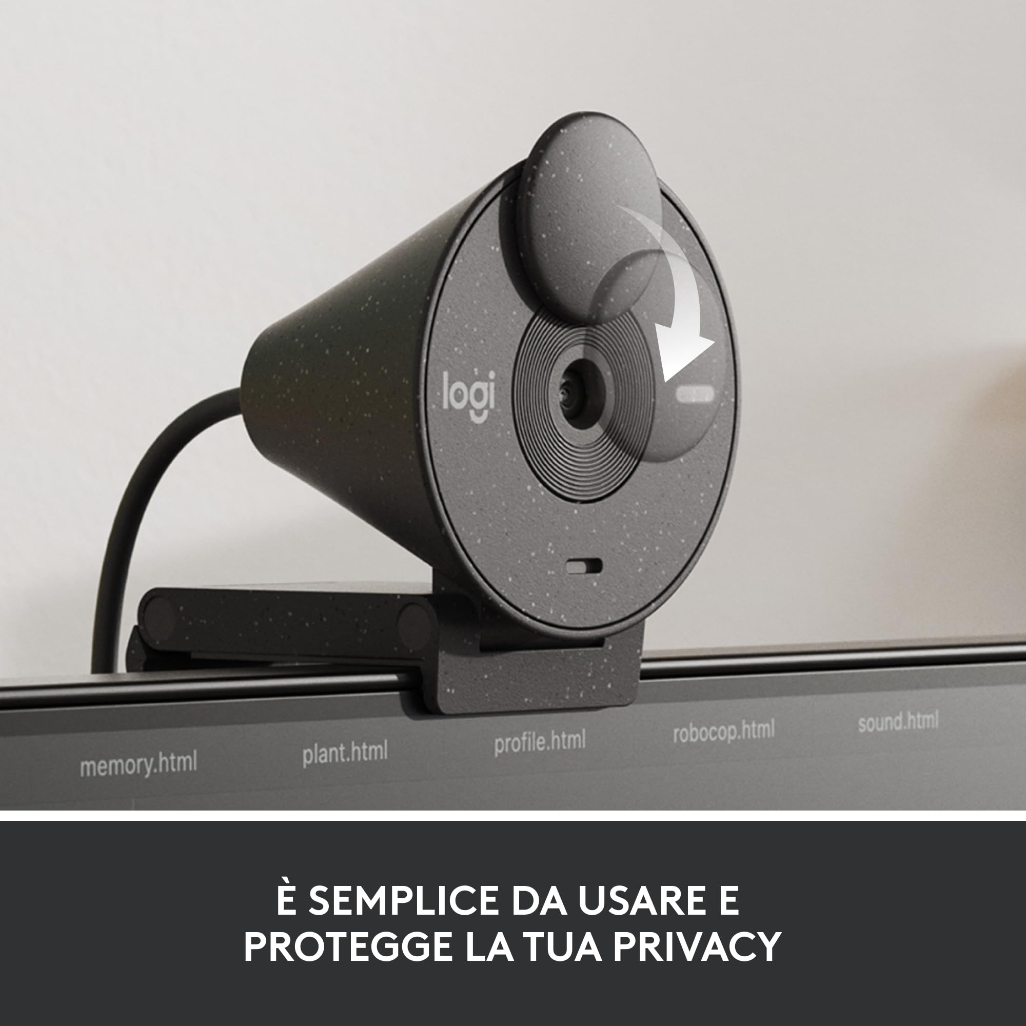 Brio 305 è una webcam da 1080p certificata per Zoom, Microsoft Teams e Google Meet per un'esperienza di riunione affidabile. Impegno per la Sostenibilità: la videocamera Brio è stata progettata in modo consapevole, con l'esclusivo design ottenuto da un minimo del 48% di plastica riciclata (3) Attualmente, l’app Logi Tune supporta le seguenti lingue: inglese, francese, tedesco, italiano, spagnolo e portoghese. (4) Sulla base di dati sulle vendite indipendenti di webcam esterne, per numero di unità (agosto 2021 - luglio 2022), aggregati per i seguenti mercati principali: CA, CN, FR, DE, JPN, SE, UK, US. 1080p resolution and RightLight 2 auto light correction create a natural meeting presence. Noise reduction technology suppresses background sound so conversations flow in clarity. Rotate to open or close the privacy shutter. An indicator light shows when Inoltre, funziona con l'intero ecosistema IT e può essere gestita e aggiornata da remoto tramite Logitech Sync. Distribuzione Sicura: Certificato per Zoom, Microsoft Teams, Google Meet e funziona con Chromebook (1), Windows, macOS, ChromeOS e le piattaforme di videochiamata più diffuse Logitech Brio 305 Setup Logitech Brio 305 : Webcam Full HD Con Microfono Antirumore Logitech C920 Offrite ai dipendenti una webcam esterna semplice da usare per migliorare la collaborazione. Semplice da usare: Semplifica le riunioni con Logitech Brio 305, una webcam USB C che consente di avere un'immagine e un suono chiari (1) Prodotto certificato come conforme agli standard di compatibilità Google. (3) 62% per Graphite, 48% per Rose e Off-White. Google declina ogni responsabilità in merito al funzionamento del dispositivo o alla sua conformità alle normative di sicurezza. E' realizzata con almeno il 48% di plastica riciclata per un impatto positivo sull'ambiente e il clima. (2) Logi Tune non è disponibile per ChromeOS.