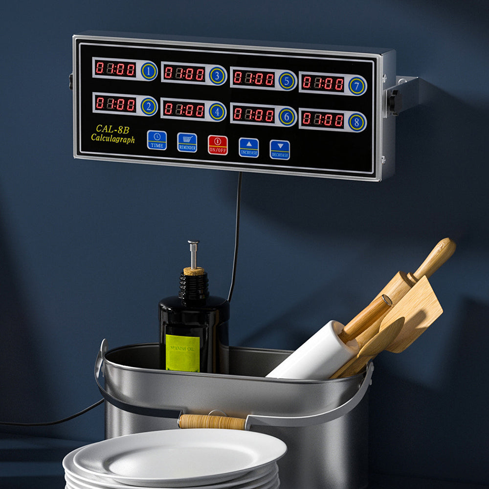 8 Channel Digital Timer CAL-8B Burger Basket Shaking Timing 3 Stage Reminder Cooking Timming Loud Alarm Led Displayer