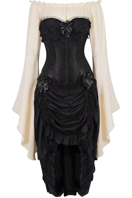 Jutrisujo Corsetto Bustino Con Gonna Abito Tutu Corpetto Pizzo Prospettiva Gotico Vittoriano Elegante Costumi Sexy Halloween Carnevale Nero Blu S