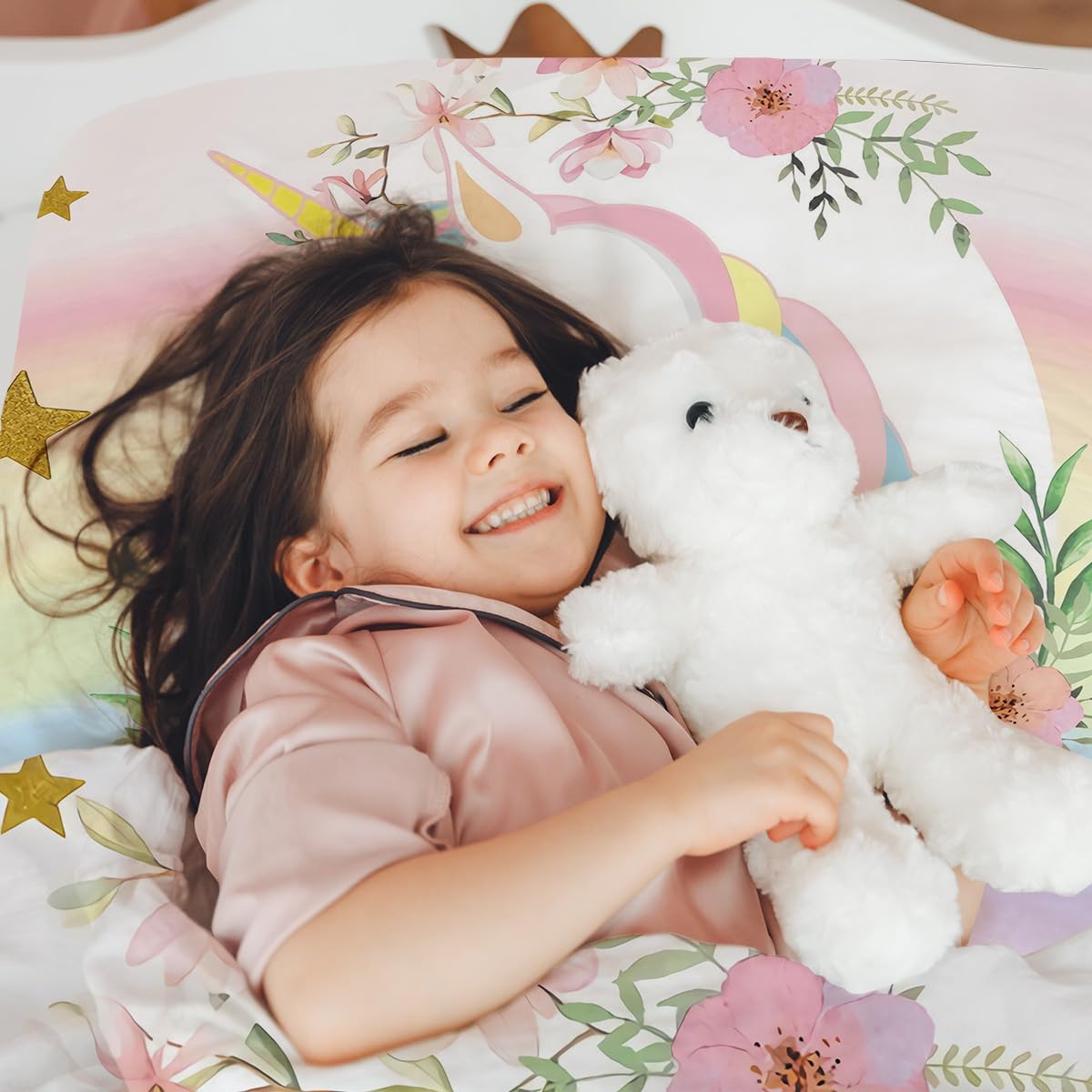 CÔTE DECO Parure Da Letto Per Bambini, Reversibile, Unicorno, Rosa
