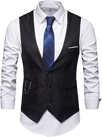 CAKERS Basic Gilet Uomo Slim Fit Blazer Gilet Doppiopetto Scollo V Tradizionale Gilet Uomo Senza