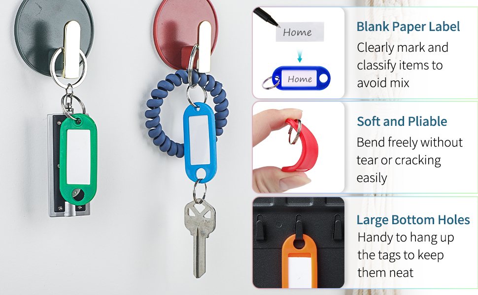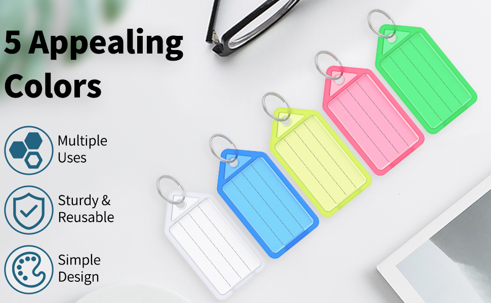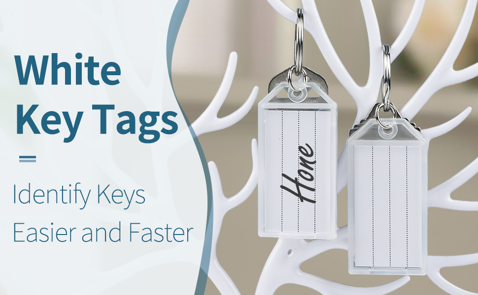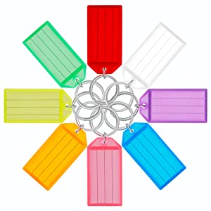 Uniclife Targhette Per Chiavi In Plastica Resistente Da 5 CM Identificatori Di Articoli Bianchi Con Etichette In Carta Bianca Copertine Trasparenti E Anelli Divisi, Confezione Da 20