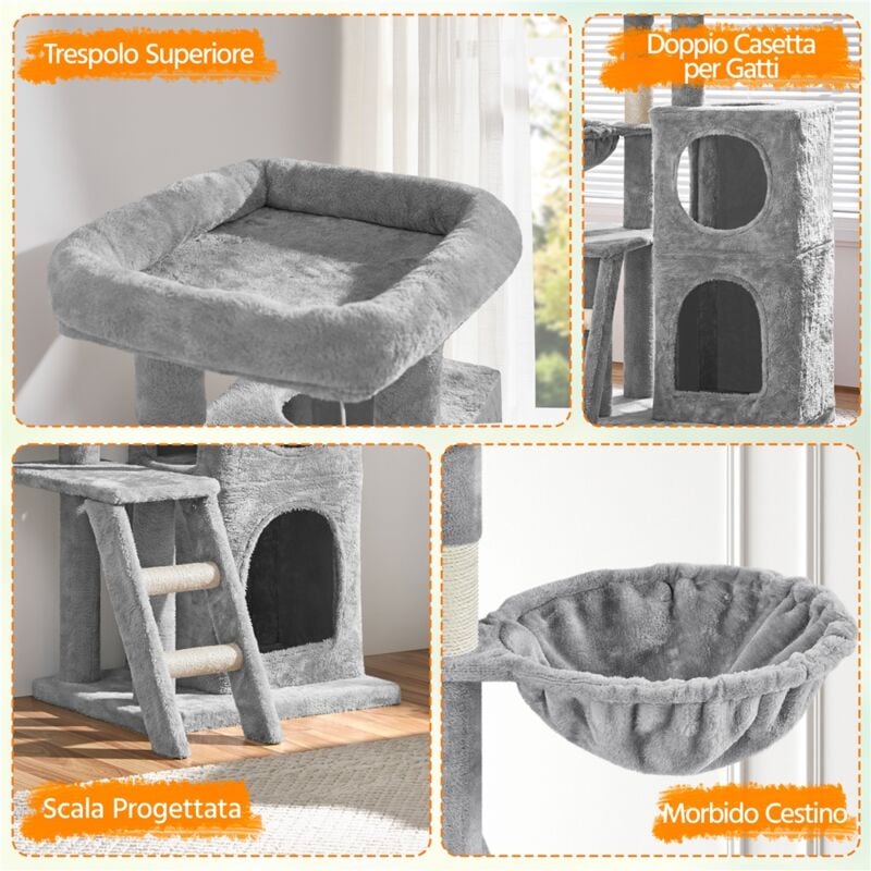 Nuova inserzione Tiragraffi albero per gatti in sisal tiragraffi per gatti gatti grandi albero rampicante XL gatti. ... Nuova inserzione Tiragraffi per gatti angolare albero per gatti 68 cm albero da gioco albero da arrampicata grigio. ... Albero Tiragraf Facile da Montare: Dimentica i complicati processi di montaggio! È comodo per stendersi e rilassarsi Grandi Trespolo per Gatto: Questo tiragraffi è dotato di un balcone con piattaforma da 48 x 40 cm per gatti di grandi dimensioni come Maine Coon, Ragdoll o gatti persiani, ecc. 2 Cucce per Gatti per Animali Domestici: 2 spaziose cucce per gatti (29 x 38 x 30 cm) offrono ai gattini un rifugio accogliente per dormire e rilassarsi liberamente Tiragraffi Per Gatti Cartone COSTWAY Albero Per Gatti 197 CM, A Più Livelli Con Nicchia In Legno Tiragraffi Gatto Tiragraffi Per Gatti Amazon Villa Stabile per Gatti: La base da 45 x 39 cm migliora la stabilità di questa casa per gatti.