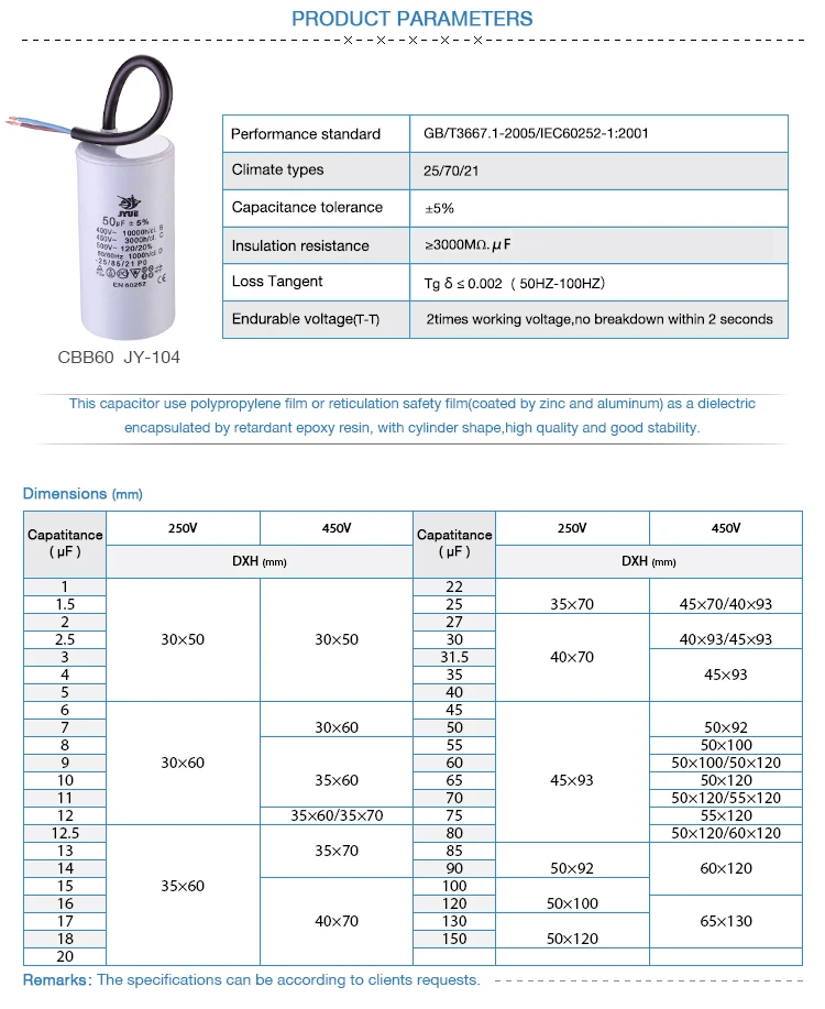CBB609UF450V - CBB60 9UF 450V CONDENSATORE SPUNTO PER MOTORE 5% SH 40