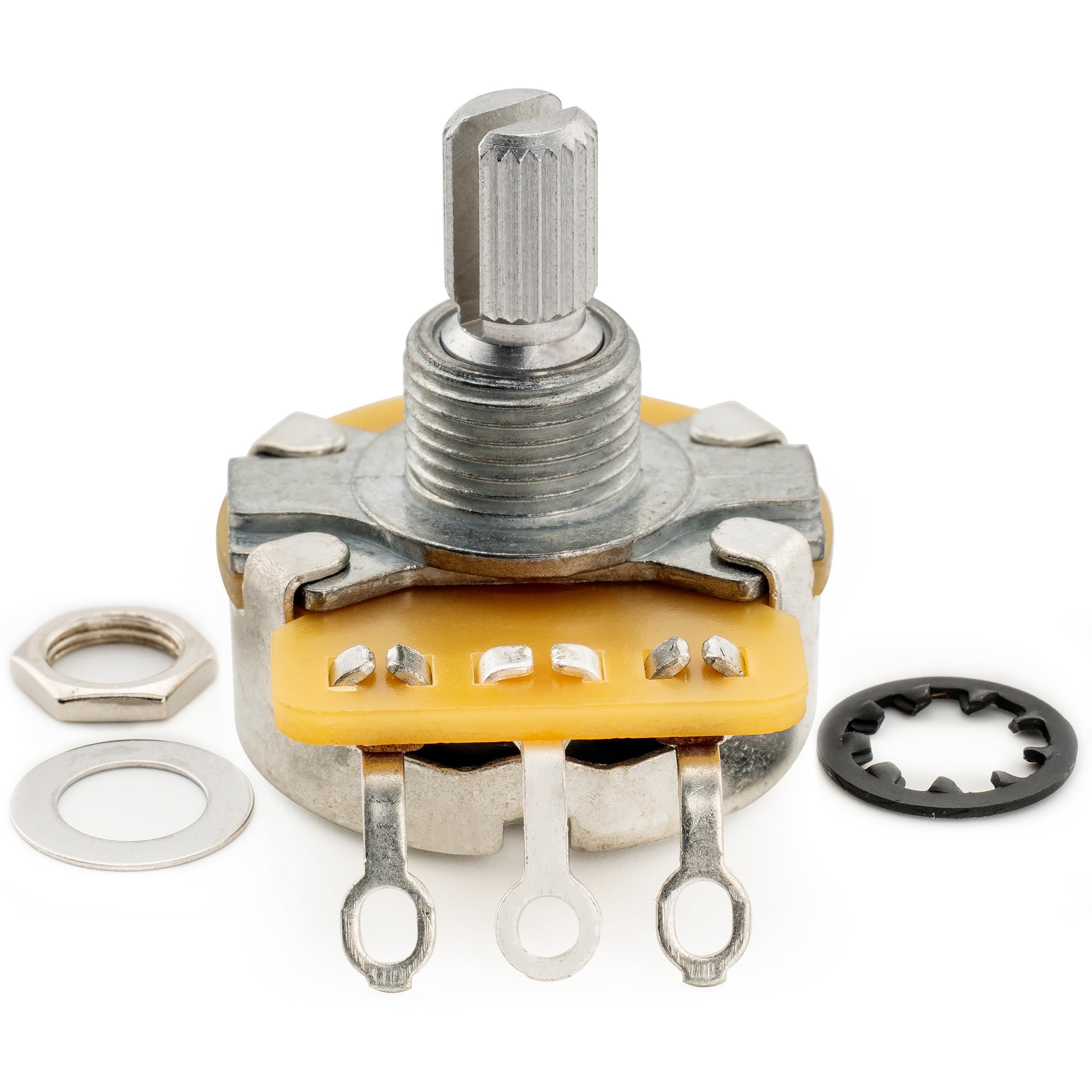 Buy CTS 450 Series B500K Inch Fine 24-Spline Split Shaft Pot Linear Taper Potentiometer for Electric Guitar Bass. Free delivery and returns on eligible orders B500K è normalmente per la manopola del volume. Serie CTS 450,500K, Linear taper, progettare per l'utilizzo chitarra basso, ti dà una risposta più liscia e più accurata Per la maggior parte della USA chitarra /basso,I potenziometri CTS sono stati a lungo la prima scelta nelle chitarre americane come Fender, Gibson, ecc. La boccola filettata è alta 3/8 pollici (9,525 mm) Fender Telecaster CTS Serie 450 B250K Split Shaft Potenziometro Linear Taper Fine 24 Basso Elettrico 24 spline split knurled shaft con dado, blocco e rondella.