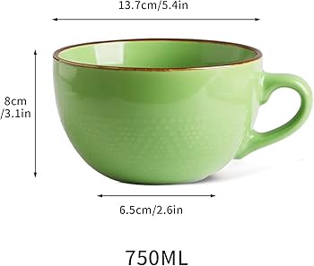 La ceramica ha un'elevata resistenza al calore, può essere riscaldata nel microonde e non si rompe o salta facilmente ad alte temperature o acqua fredda. Una bella tazza da caffè può aggiungere colore a uno stile di vita già elegante e nobile. Tazza Caffè Ikea Prezzo Tazza Grande In Ceramica,Tazza Da Caffè Grande 600ml,Grande Ciotola Per Cereali Con Manico,Tazza Da Tè In Porcellana, Grande Tazza Da Cappuccino, Tazza Xxl Tazze Cappuccino Tazza da caffè in ceramica: la tazza grande è realizzata in ceramica di alta qualità, è stata cotta a una temperatura di 1350 gradi Celsius ed è priva di piombo e cadmio, quindi utilizzabile senza problemi * Colore: kaki, bianco, rosso, verde. * Capacità: 700 ml. Elegante e minimalista: la tazza da caffè è dotata di un motivo a pois sulla parete esterna, decorativa e antiscivolo. È elegante e minimalista, resistente ai graffi e all'abrasione ed è estremamente durevole. L'uso corretto consente di prolungare la durata delle stoviglie. Il bordo della tazza è decorato con un bordo dipinto a mano vintage e la parete interna è liscia e facile da pulire. Non è solo una tazza di caffè. Specifiche: * Materiale: ceramica. Tazza da caffè in ceramica: la tazza grande è realizzata in ceramica di alta qualità, è stata cotta a una temperatura di 1350 gradi Celsius ed è priva di piombo e cadmio, quindi utilizzabile senza problemi. Si prega di utilizzarlo in modo sicuro. 2. Se è graffiato, può essere imbevuto e pulito con acqua calda mescolata con bicarbonato di sodio o aceto o lucidato con dentifricio per farlo tornare come nuovo. 3. Non utilizzare una griglia metallica in acciaio inossidabile per la pulizia. * Dimensioni: 17 x 8 x 8 cm. * Peso: 700 g. Nota: 1. Cerca di non mettere il prodotto ceramico direttamente in acqua fredda dopo averlo rimosso dal microonde.