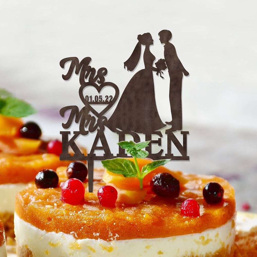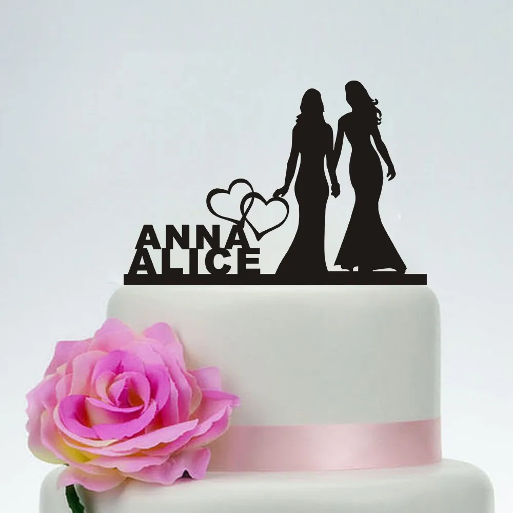 Legno Stesso Sesso Cake Topper Silhouette Due Spose Romantico Wedding Cake Topper Due Donne Decorazioni Di Nozze Nome Personalizzato Est Data Lesbiche Coppia Regali