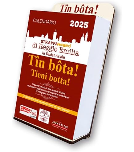 Compra Calendario STRAPPAPENSIERI di Reggio Emilia TIN BOTA frasi proverbi in dialetto Reggiano con supporto in legno .. SPEDIZIONE GRATUITA su ordini idonei Lo STRAPPAPENSIERI è il regalo adatto a chiunque per non dimenticare le tradizioni della nostra zona, dura un anno e sicuramente sarà apprezzato da chi lo riceve. Prodotto INTERAMENTE IN ITALIA in maniera artigianale e CON SUPPORTO IN LEGNO ha un formato verticale di 10x15cm che non occupa molto spazio sulla tua scrivania o nella tua casa. Calendario Filosofico 2025 Calendario In Dialetto Romagnolo “Ten Bota” 2024 – SIGEM.it Calendario Proverbi 2025 UNA FRASE IN DIALETTO OGNI GIORNO illustrate e con relativa traduzione in italiano e spiegazione del significato d'utilizzo. La collana STRAPAPPENSIERI di calendari giornalieri e riealizzata in dialetto di Modena, Bologna, Reggio Emilia, Ferrara, Mantova, Parma, Milano, Roma, Napoli, Roma, Romana con frasi filosofiche