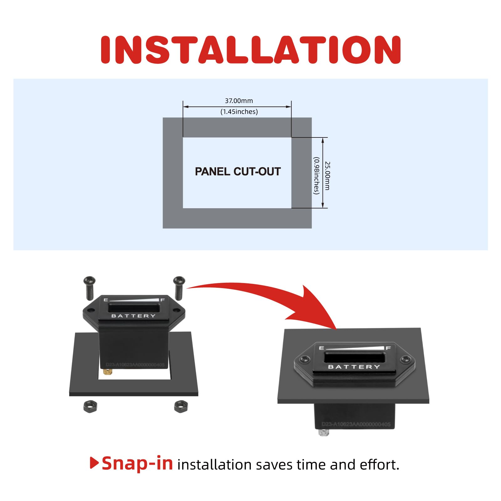 Colore LED: 1 Rosso 2 Giallo basso 7 Verde AMPIA GAMMA DI TENSIONE: l'indicatore della batteria funziona con batterie al piombo da 12V 24V 36V 48V (non Trojian) per golf cart, carrelli elevatori, camion, RV, ATV, UTV, scooter, barche, biciclette, veicoli elettrici, moto d'acqua, ecc Gamma di tensione Batterie al piombo acido 12v 24v 36v 48v, escluse le batterie Trojan. piombo batterie accumulatore acido accumulatori energia elettrico scarica chimica batteria carica ciclo corrente pile elementi spaccato impianto funzionamento pb cadmio La batteria può essere utilizzata per auto, moto, golf cart, barche, biciclette elettriche, ecc. Prestazioni costanti Impermeabile. Interferenza antistatica. Descrizione prodotto Informazioni sul prodotto RQ-BI001 è un indicatore di capacità della batteria per monitorare la tensione della batteria al piombo, 4 intervalli di tensione da scegliere: 12V, 24V, 36V, 48V, adatto per il carrello da golf RV barca club car motosega pompa di pozzo auto camion ibridi tagliafoglie SUV Hamaha carrello auto camper tosatrice moto. Tester Per Batterie RileyFine LED Batteria Calibro,Acido Di Piombo Batteria Tensione Misuratore Di Carica & Scarica, Tester Della Batteria Con Funzione Di Allarme, Per Carrello Da Golf Carrello Elevatore RV (S-12/24v Schema Carica Batteria 4 Led MISURATORE DI LIVELLO DELLA BATTERIA: il monitor dello stato della batteria vi aiuta a sapere quanta energia è rimasta nelle batterie e a organizzare il programma di ricarica o di lavoro per i vostri veicoli o attrezzature Resistente alle alte e basse temperature. Indicatore dell'indicatore del carburante della batteria Visualizzazione immediata dello stato di carica della batteria Aiuta a sapere quanta carica è rimasta nella batteria e quando è necessario caricarla in anticipo, oltre a fornire letture accurate del livello di scarica. Sono disponibili 2 tipi di collegamenti di alimentazione: Collegamento del polo C con il positivo(+) come passo chiave Promemoria batteria scarica Quando il livello della batteria è ≤ 20%, la seconda barra colorata lampeggia per ricordare di caricare la batteria in tempo per il normale utilizzo del dispositivo.