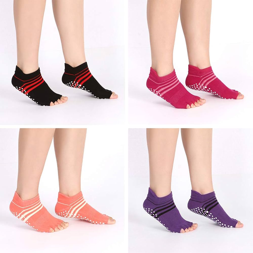 LORYLOLY 4 Paia Calzini Yoga Donna, Calze In Cotone Traspirante Antiscivolo EU35-40, Per Yoga Fitness Pilates Ballet Danza Ginnastica