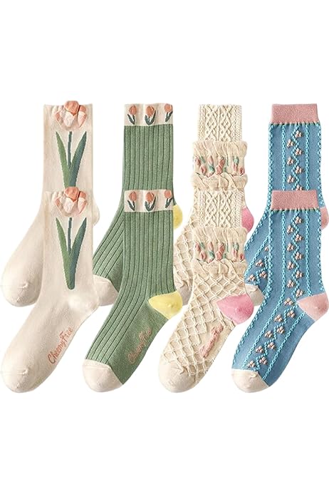 Calzini Alcott Donna LOZTBUE 4 Paia Di Calzini Da Donna Colorati Con Volant, Floreali Calze Donna Colorate Calze da donna colorate: Lunghe circa 28 cm e larghe 8 cm, queste calze da donna colorate sono estremamente resistenti e hanno un'elasticità perfetta per garantire una vestibilità confortevole. Morbide e confortevoli: queste calze da donna sono realizzate all'80% in cotone e al 20% in elastan. Un bel regalo: da indossare tutti i giorni o in occasioni speciali come Natale, compleanno o festa della mamma, i simpatici calzini sono un bel regalo che augura al destinatario buona salute e spera che i suoi piedi siano più protetti e curati. Ecco perché i calzini carini sono un ottimo regalo. Spessore medio: i nostri calzini sono di spessore medio, adatti a tutte le stagioni, ad asciugatura rapida, assorbono il sudore e sono resistenti. La fascia elastica nella parte superiore delle calze da donna non ostacola la circolazione sanguigna.