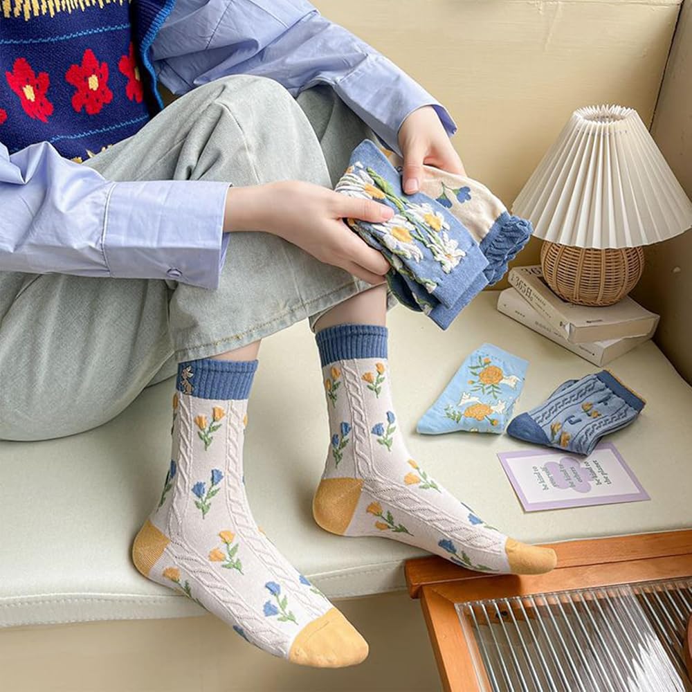 LOZTBUE 4 Paia Di Calzini Da Donna Colorati Con Volant, Floreali