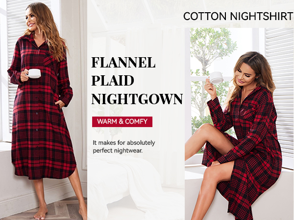 Generico Camicia Da Notte Donna Cotone Manica Lunga Pigiama
