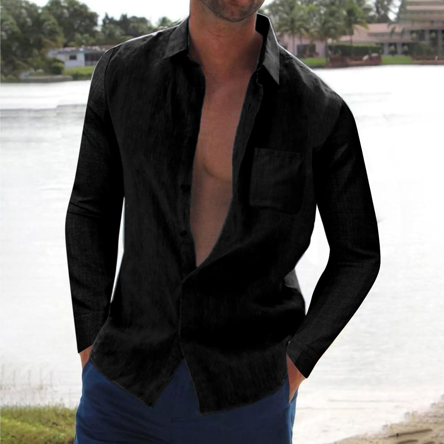 Camicia Da Uomo Per Attività All'aria Aperta, A Maniche Lunghe, Casual, Per Autunno, Tinta Unita, Con Colletto Rovesciato, A Maniche Lunghe, Da Uomo