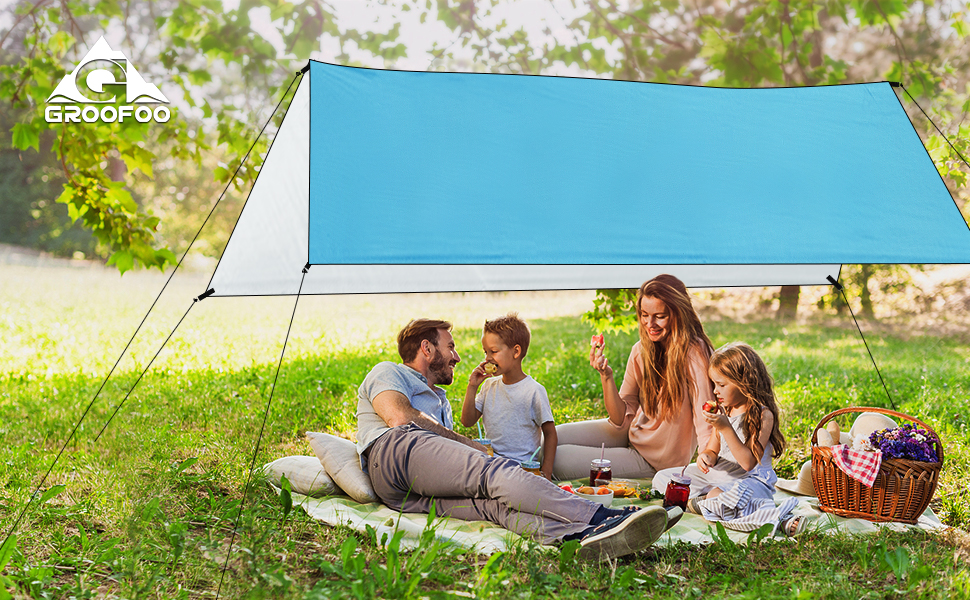 Tenda Parasole Da Campeggio, GROOFOO 3x3M Telone Da Campeggio Portatile