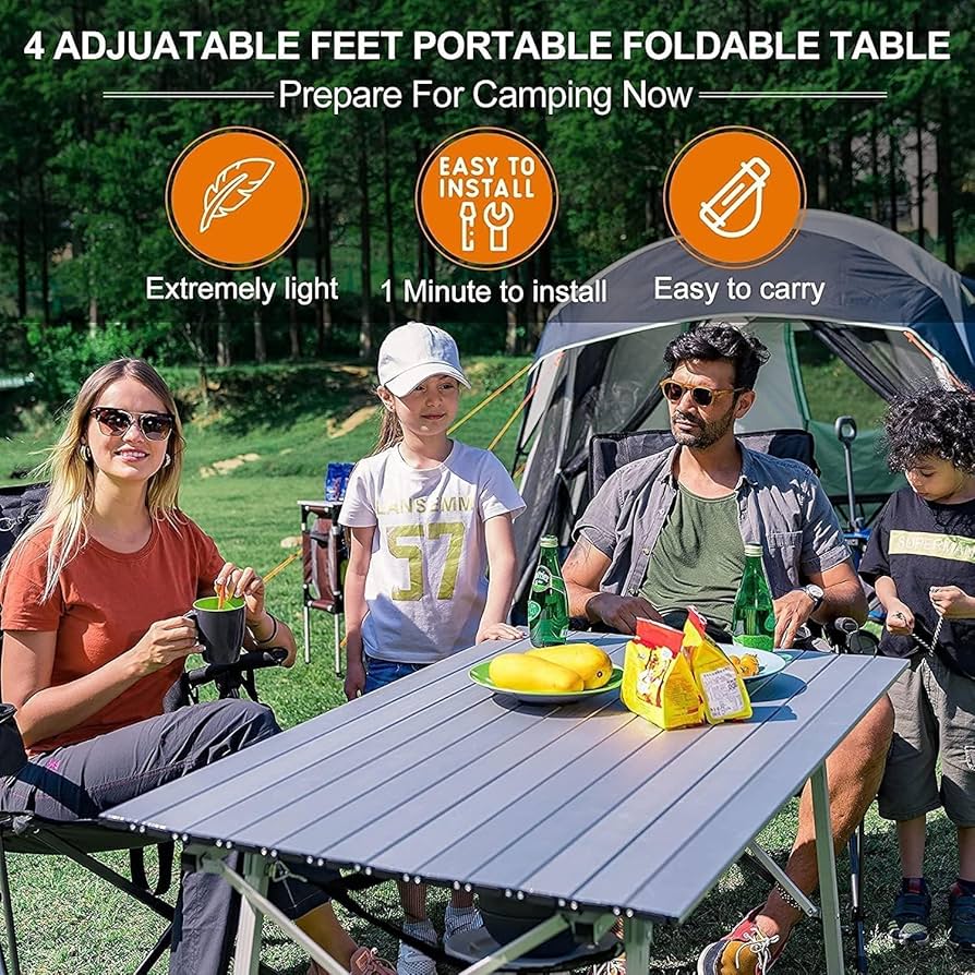 Portatile e leggero: il tavolo da campeggio pieghevole ha una struttura in alluminio senza fili che consente al tavolo da campeggio di essere piegato e trasportato facilmente. Basta pulire con un asciugamano bagnato o acqua e sapone. Il tavolo è robusto e resistente, ma leggero e compatto. L'installazione e lo smontaggio del tavolo richiede solo 2 passaggi. Caratteristica: 1.Versatile compagno all'aperto:Questo tavolo pieghevole è adatto a varie attivà all'aperto come campeggio, escursionismo, alpinismo e picnic Questo tavolo può sostenere fino a 50 kg, ma pesa solo 1,2 kg. Il tuo tavolo è pronto! Smontarlo è altrettanto facile. Da Esterno SET ALLUMINIO TAVOLO Campeggio Pieghevole 120 CM Con 4 Sgabello Tavolo Pieghevole Ulteriore scomparto portaoggetti in rete: l'innovativa rete portaoggetti da appendere può essere assemblata sotto il tavolo da campeggio per fornire più spazio e contenere più oggetti per te. Basta staccare il piano del tavolo e poi le cornici e riporlo nella sua custodia per il trasporto. Ha un rivestimento metallico in modo che il tavolo non sembri opaco. Facile installazione e pulizia: il tavolo da campeggio offre comodità e supporto per le persone. Materiale di grado industriale: il nostro tavolo pieghevole è realizzato con tubi in lega di alluminio di alta qualità e una struttura triangolare con staffa in ABS. Porta questo tavolo con te ovunque senza sforzo. I tubi di alluminio resistenti hanno una struttura forte, mentre il piano del tavolo in alluminio di grado industriale è leggero e pieghevole.