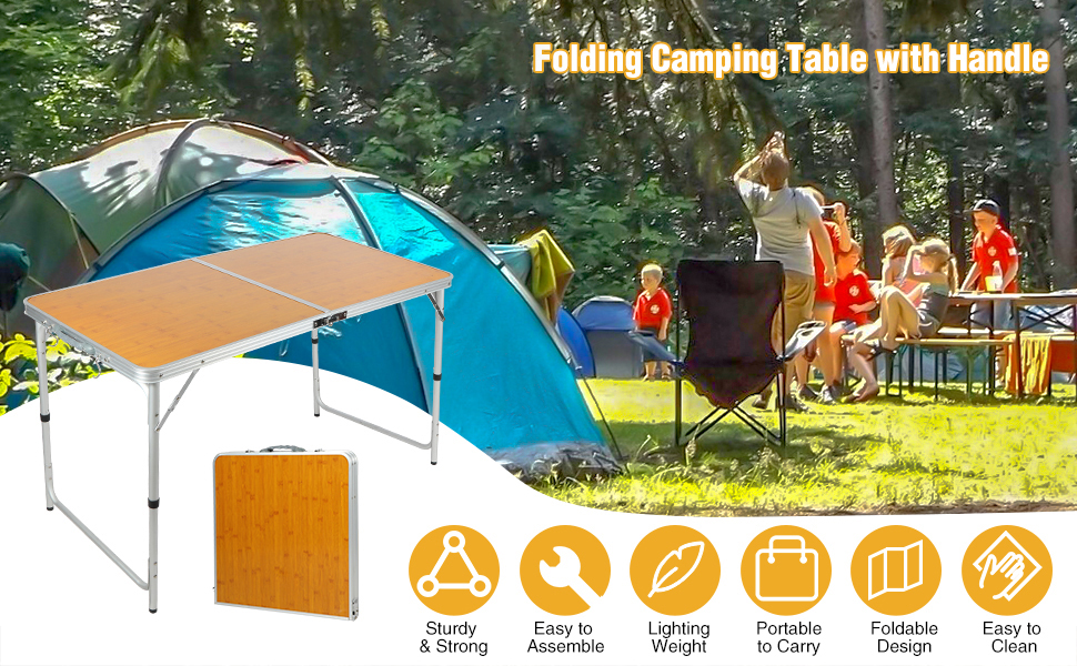 COSTWAY Tavolo Da Campeggio Pieghevole In Alluminio, Altezza Regolabile
