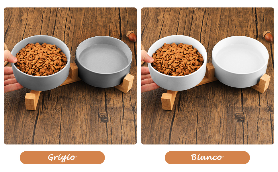Ciotole Per Gatti Rialzate Ciotola Per Cani Rialzata 850 Ml 770 G Ciotola Rialzata Per Animali Bambù Ciotola Rialzata Prezzo Ciotola Acqua Cane Antigoccia Il ciotole ceramica set comprende due ciotole in ceramica da 400 ml, la ciotola per gatti è realizzata in ceramica resistente, la ciotola può anche essere messa nel microonde per riscaldare il cibo, è più facile da pulire rispetto alle ciotole tradizionali. La nostra ciotole gatti è garantita per la sicurezza alimentare ed è priva di piombo e cadmio, non tossica, innocua, inodore e durevole, perfetta come ciotola per cuccioli, gatti, criceti, conigli, ecc. Ciotole Gatti Rialzate, Revivoer 2 pezzi 400ML Ciotole per Cani Rialzate in Ceramica, Ciotole per Gatti con Base e Pad Antiscivolo, Ciotola Gatto Ceramica per Alimenti e Acqua Adatte per Cani (bianco Il set di ciotola per gatti ciotola per cani è pratico e combina la ciotola per il cibo e la ciotola per l'acqua in una sola ciotola, una ciotola per cani per il cibo e una per l'acqua, il tappetino della ciotola è realizzato in silicone resistente di alta qualità e protegge i pavimenti dalle gocce d'acqua e dai residui di cibo.