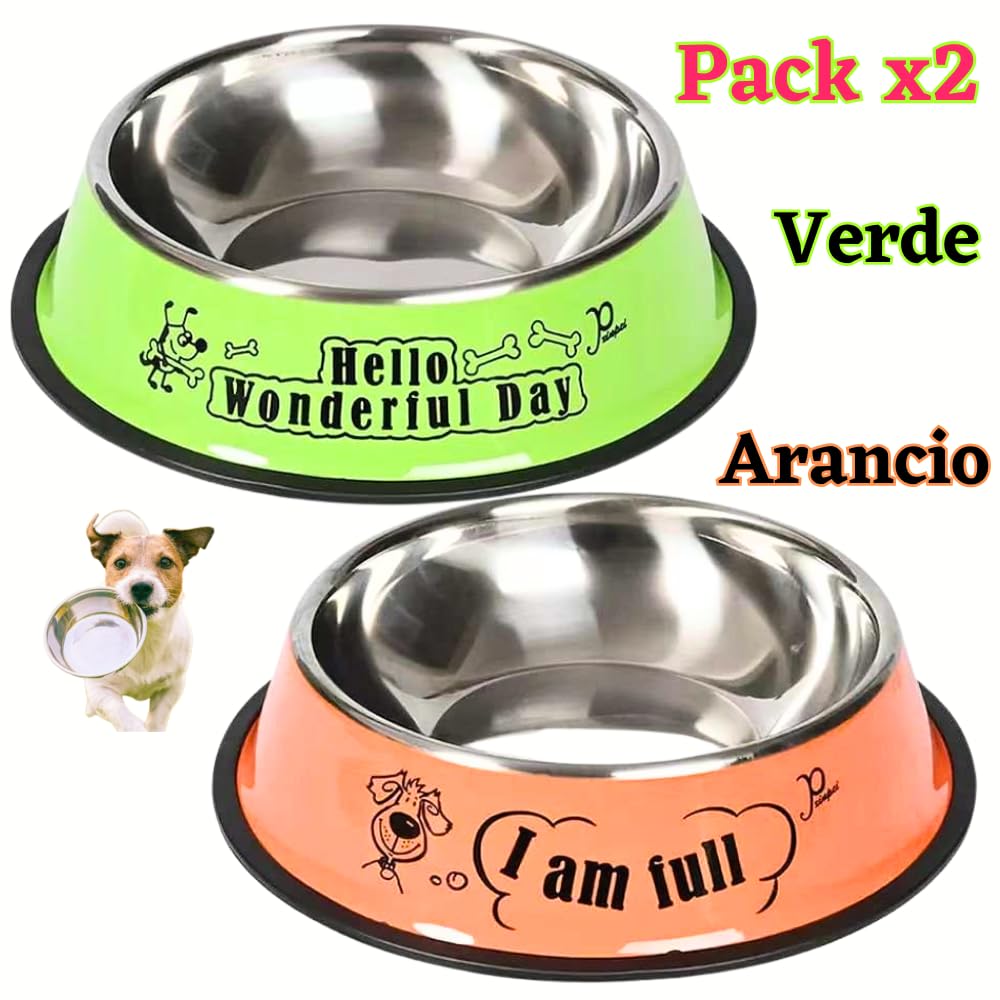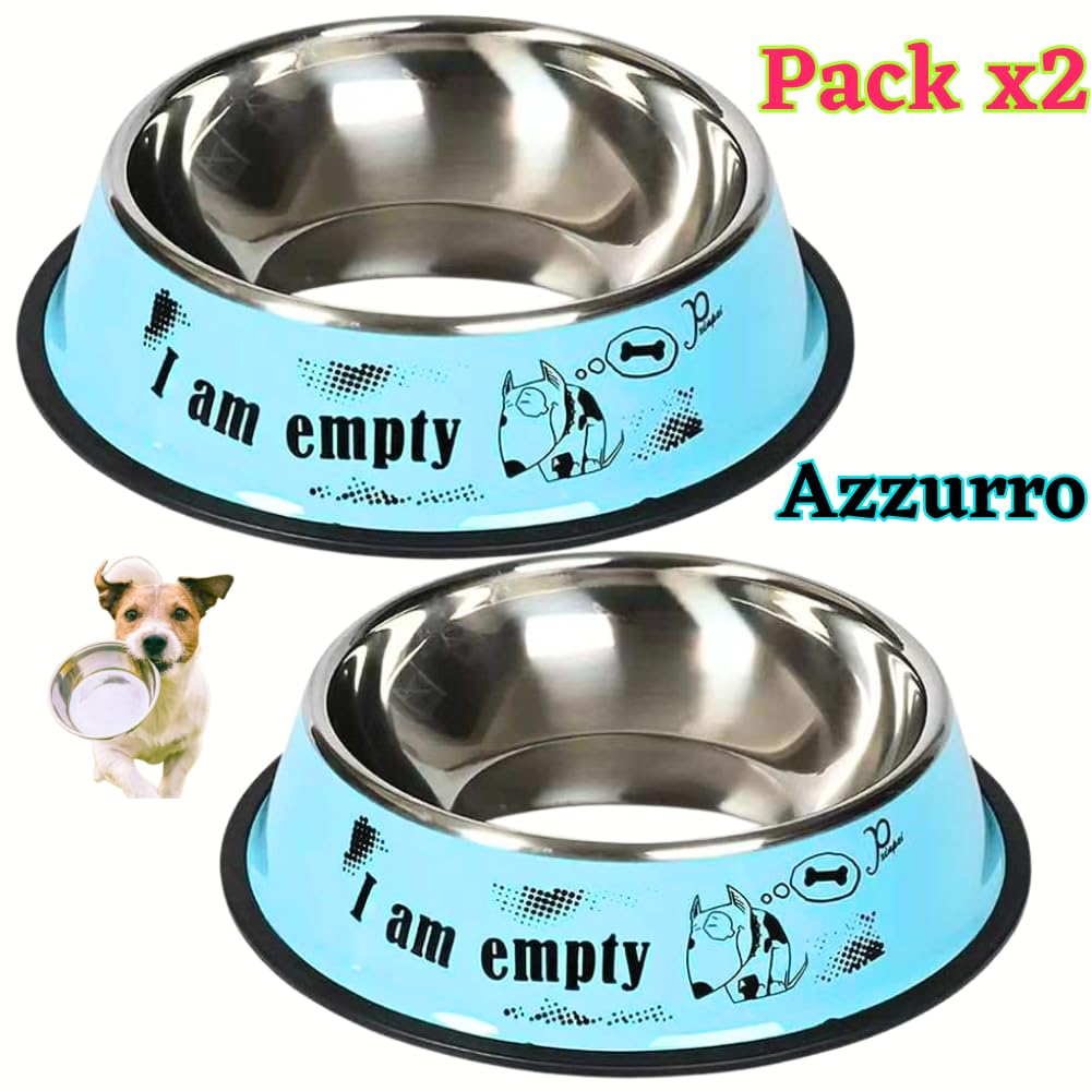 Set 2 Ciotole Acciaio Inox Cani Gatti Animali Domestici 400 Ml Cm