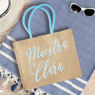 Borse Maestra Personalizzabili Combo Borsa In Canvas Con Pochette Abbinata Da Mare Vacanza Borse Personalizzate Maestre DESIGN VERSATILE: La borsa tote presenta una tasca frontale decorativa e manici robusti, ideale per uso quotidiano Borsa in cotone canvas e base in juta abbinata ad una pochette in cotone personalizzata . Idea regalo per la maestra molto originale e utile DIMENSIONI PRATICHE: Borsa tote capiente per tutti gli essenziali, accompagnata da una comoda pochette per gli oggetti personali. Chiusura con zip in tinta. Fondo e manico in Juta. 34x52x17 Trousse – Pochette in Cotone Ecologico 180gr. Dimensioni: cm 34x52x17Chiusura con zip.