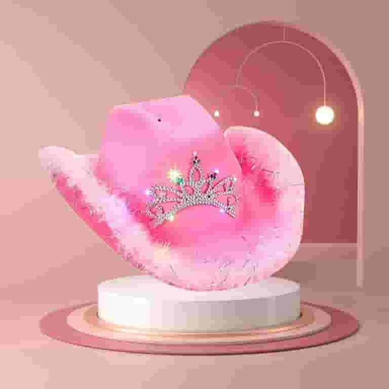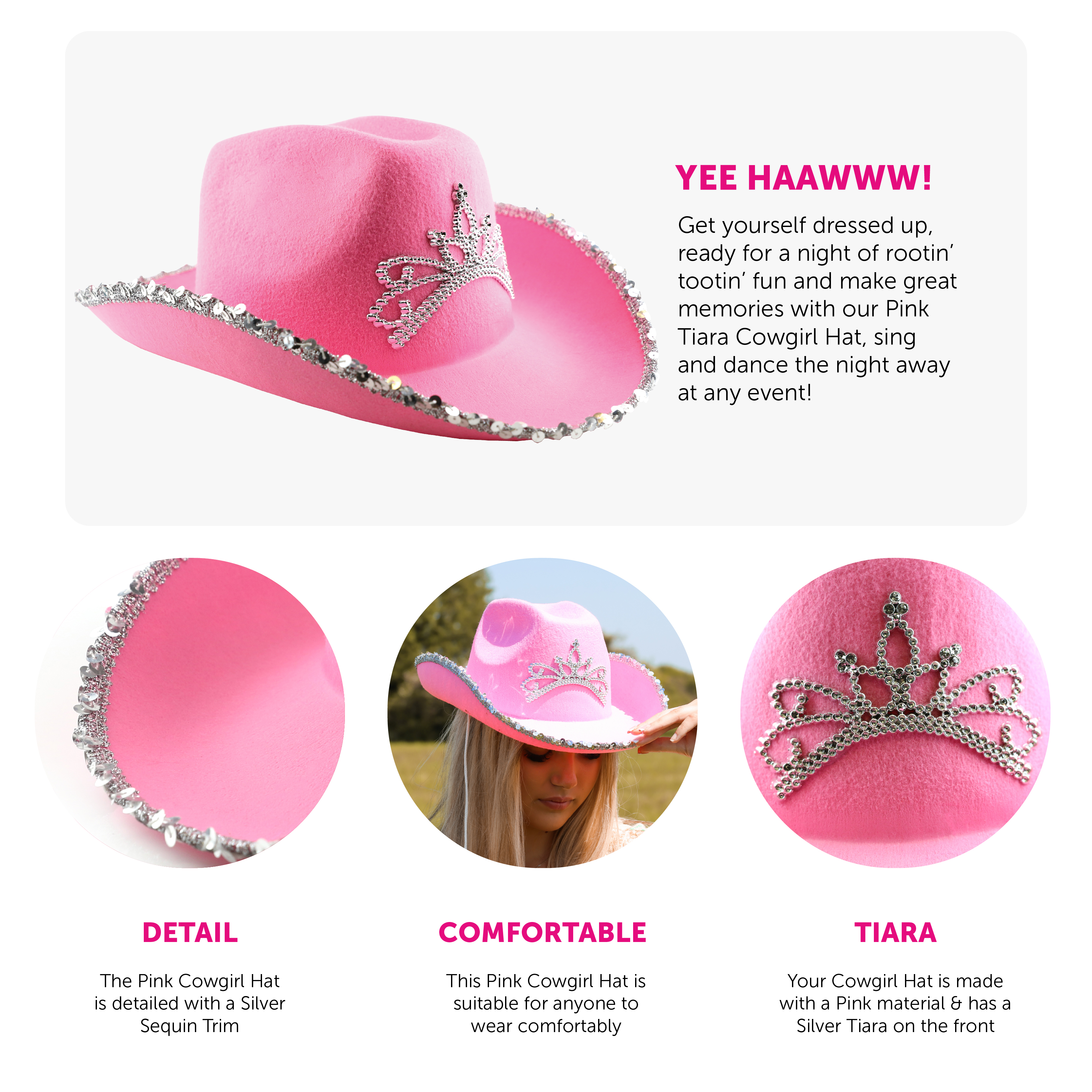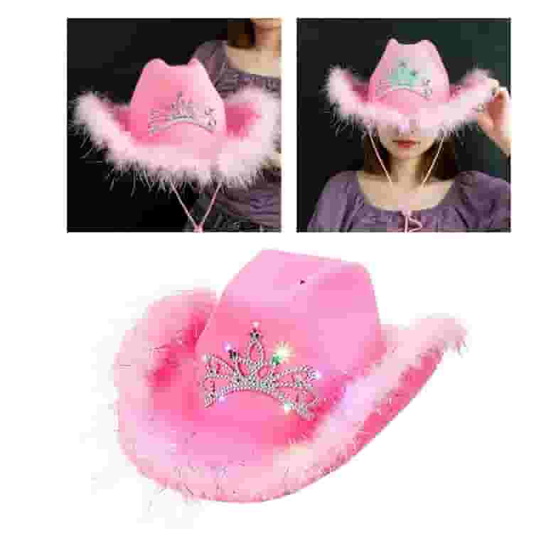 Rosa Cowboy Cappello Di Feltro Con Paillettes Costume Donna Cowgirl