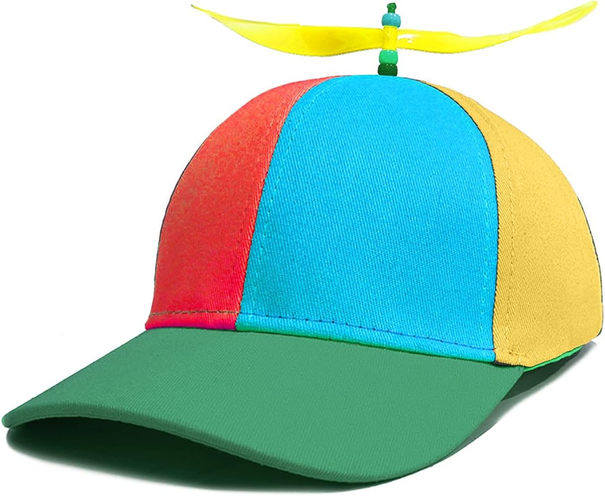 Cappello da baseball elicottero ad elica. Stile sportivo, alla moda e popolare. Questo prodotto può esprimere il tuo buon temperamento. Un bel regalo di alta qualità per la famiglia e gli amici. Si sentiranno molto felici di avere questo berretto. Dimensi Usi multipli: berretto a elica adatto a molte occasioni, puoi indossarlo in cortile con i tuoi bambini, o uscire con i tuoi amici per giocare a pesca, fare sport, viaggiare, anche in spiaggia; questo cappello può essere utilizzato per i viaggi quotidiani, ti dà un'aria energica. Cappellino da baseball con Elica: il cappello di splicing colorato ha un'elica rotante, e il cappello a elica può ruotare delicatamente con la brezza, anche il vento generato dalla normale camminata, può girarlo, rendendo il tuo cappello più accattivante. Cappelli Cono Elicottero, Cappello Elica, Cappello Da Elica, Berretto Per Cappellini Carnevale Alta qualità: tessuto in cotone di alta qualità, leggero, traspirante, resistente, morbido al tatto dona lusso e comfort alla tua giornata, ampia fascia interna assorbente il sudore aiuta a mantenere la testa fresca e protegge la testa, il viso, il collo. Protegge dal sole. La confezione include: il set include 1 cappello a elica, 1 libellula GWAWG in plastica rotante sostituibile, che può soddisfare il tuo uso quotidiano, renderti carino e squisito, e puoi condividerlo con i tuoi amici.